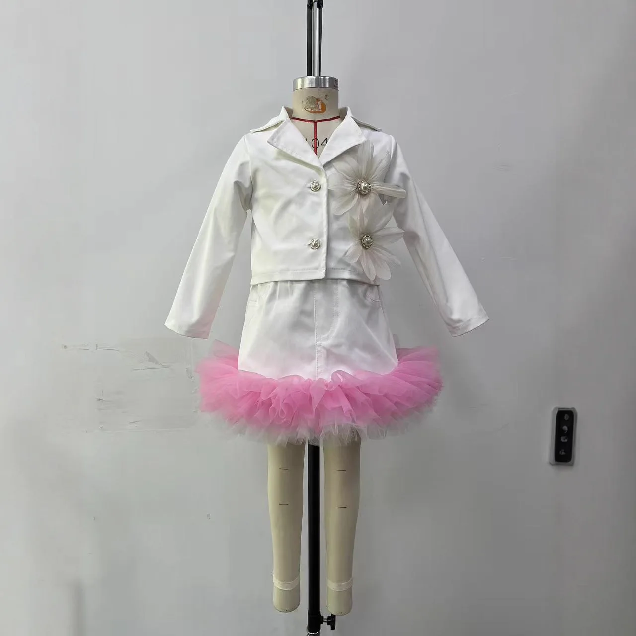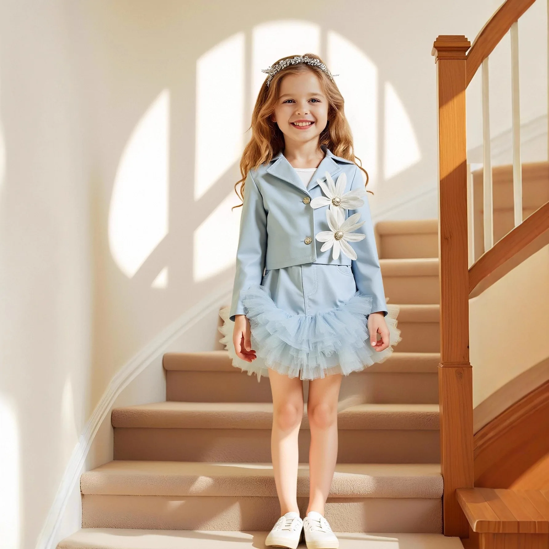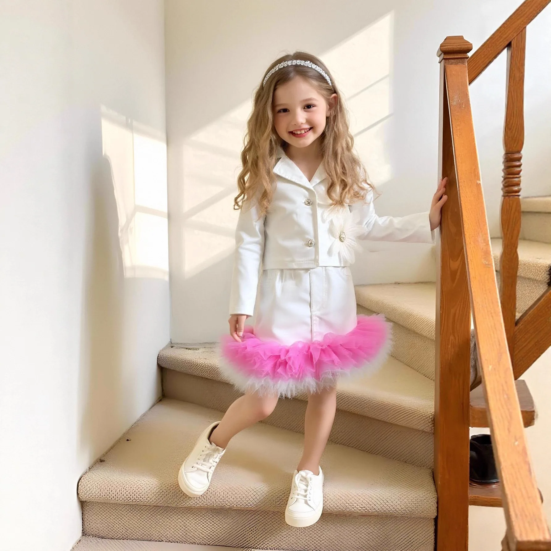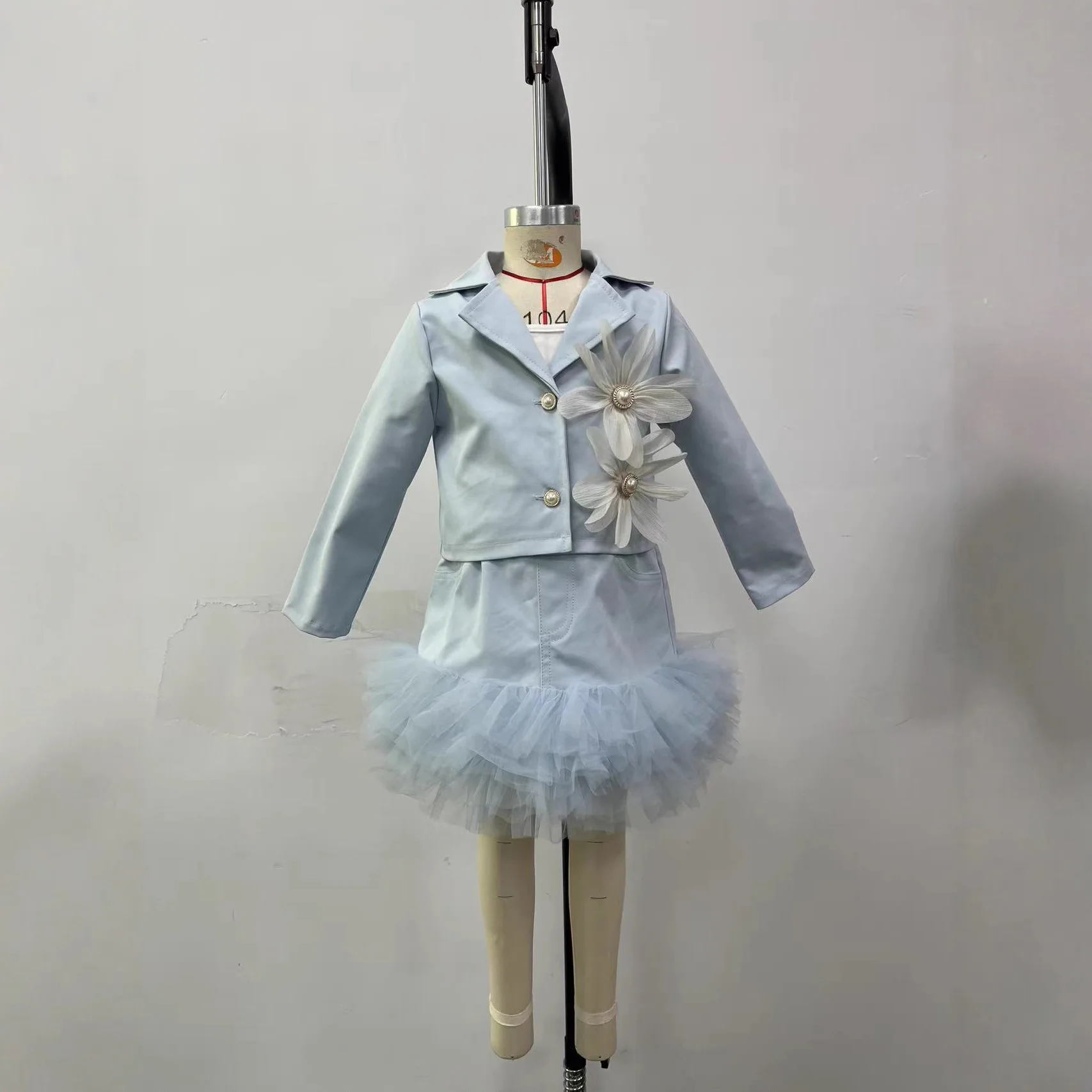 For Girls Casual Solid Long Sleeve Suit Mesh Skirt Two-Piece Set New Children's Clothing Dress Autumn Set
