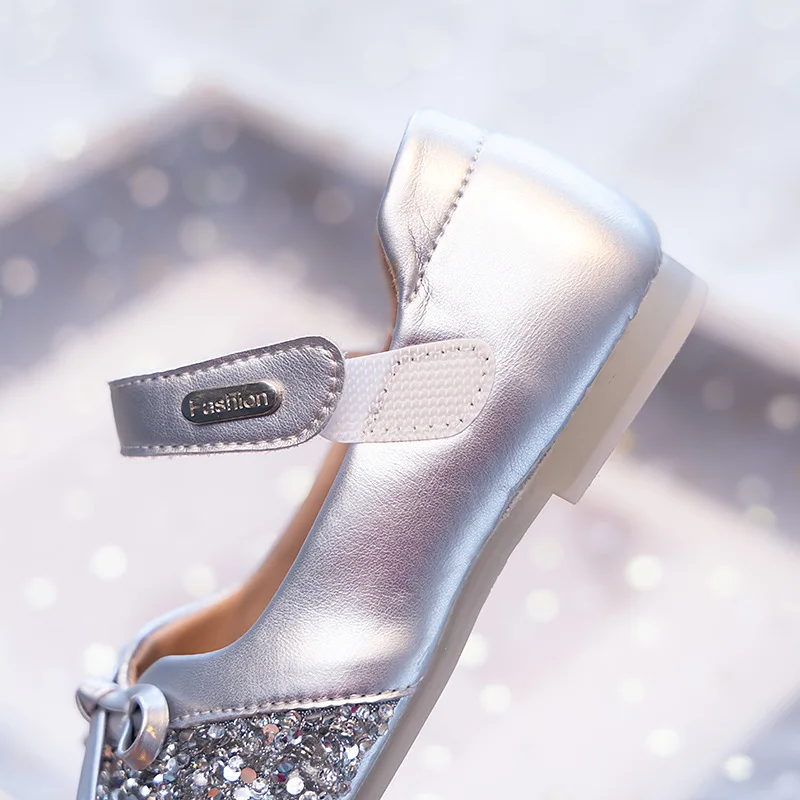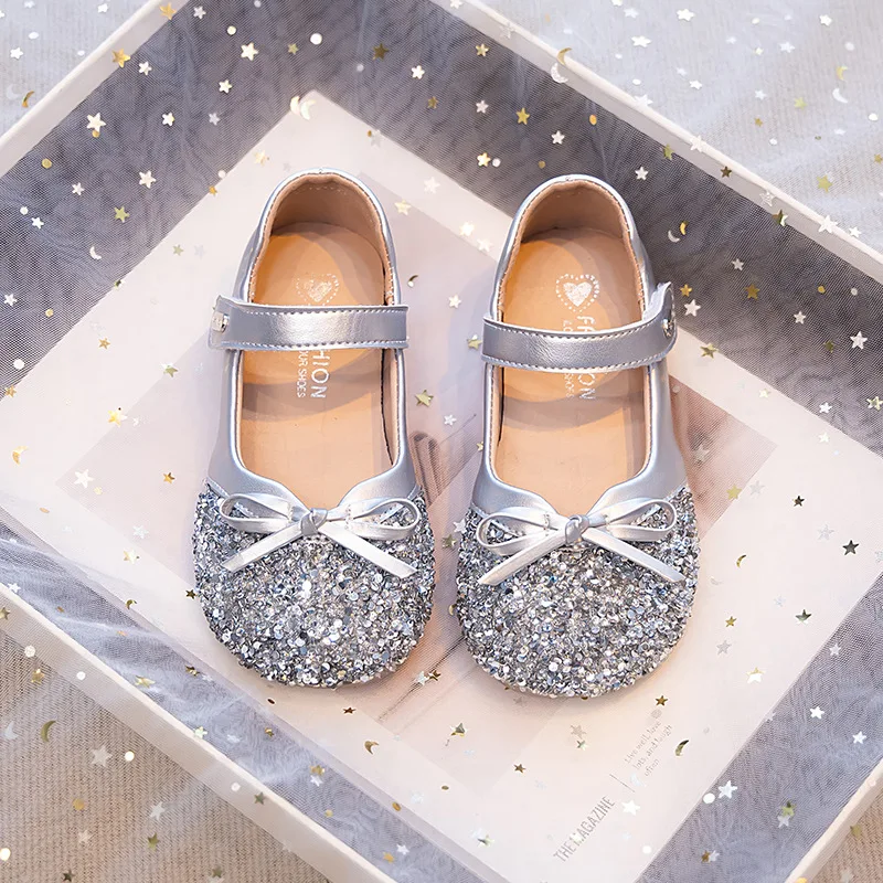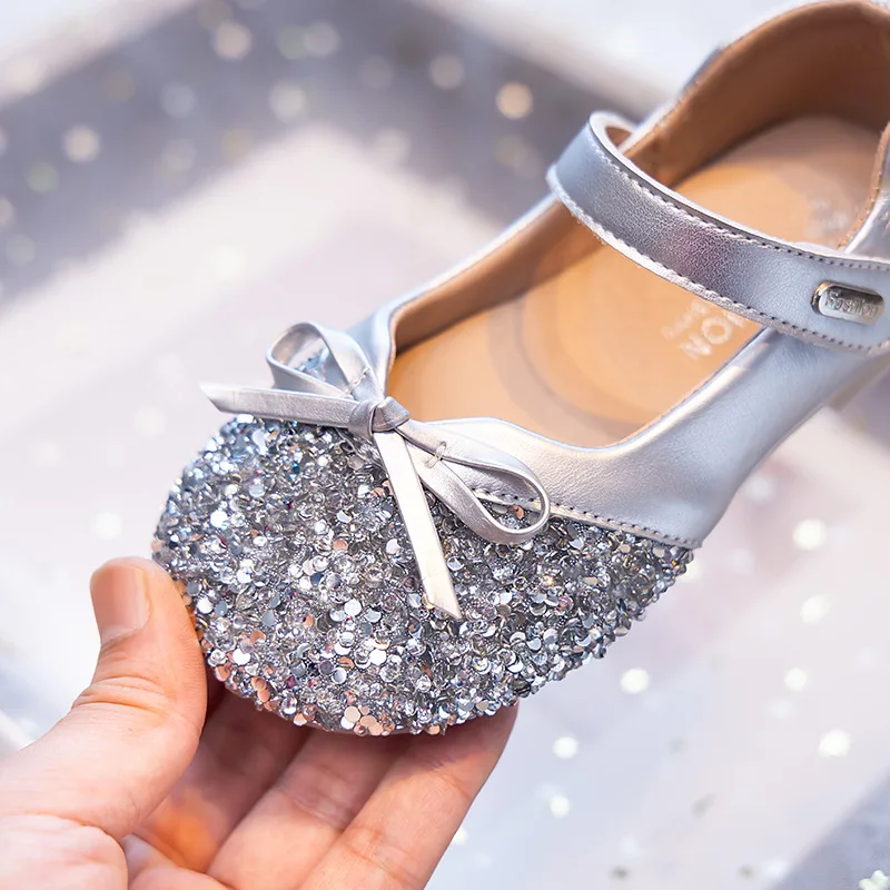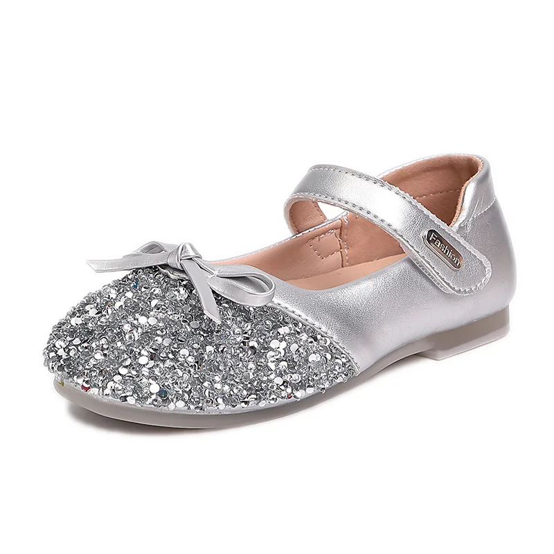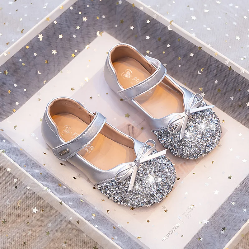 Princess Shoes Girls 2026 New Children's Silver Crystal Slip-On Summer Soft Sole