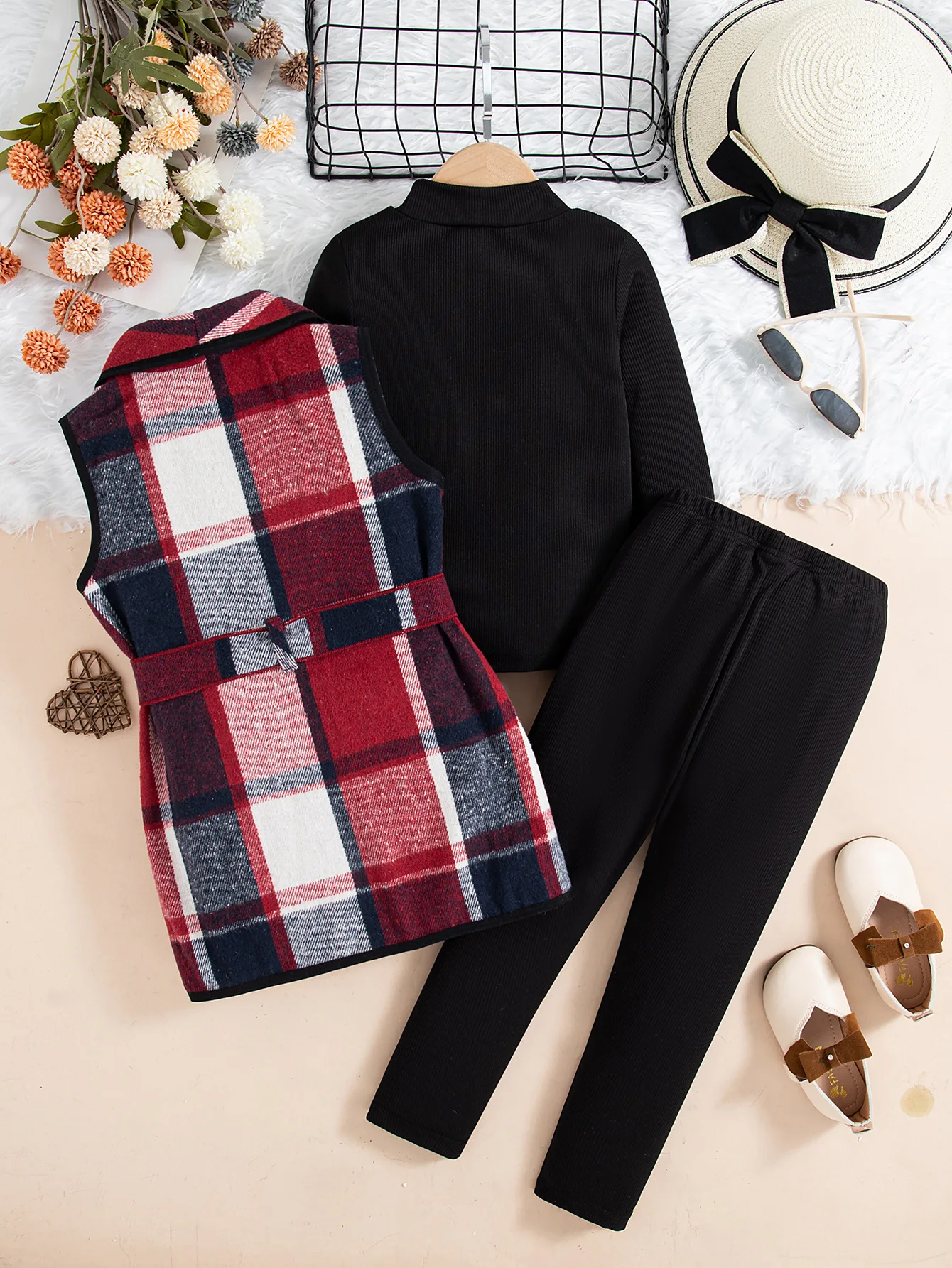 Casual Plaid Lapel Sleeveless Long Vest Coat Solid Color Pit Strip Half-High Neck Long Sleeve Top Polyester Europe