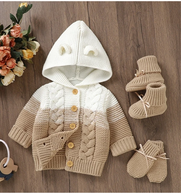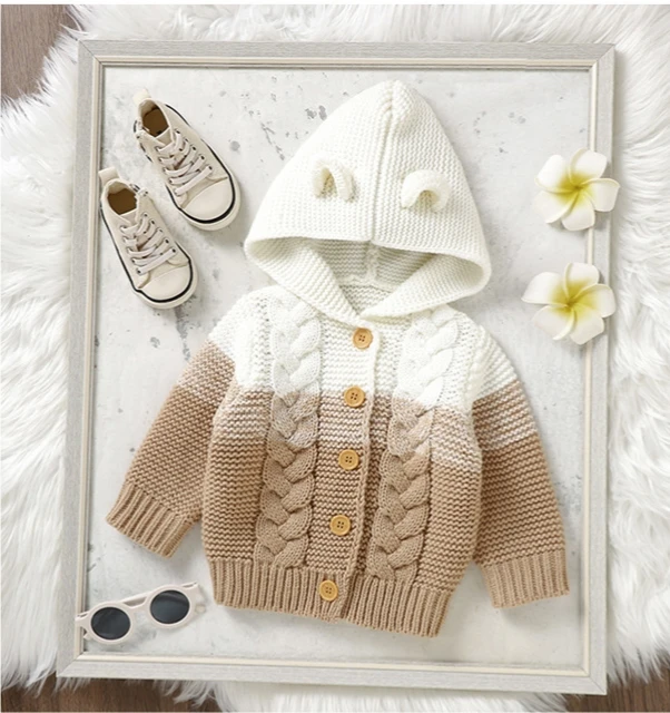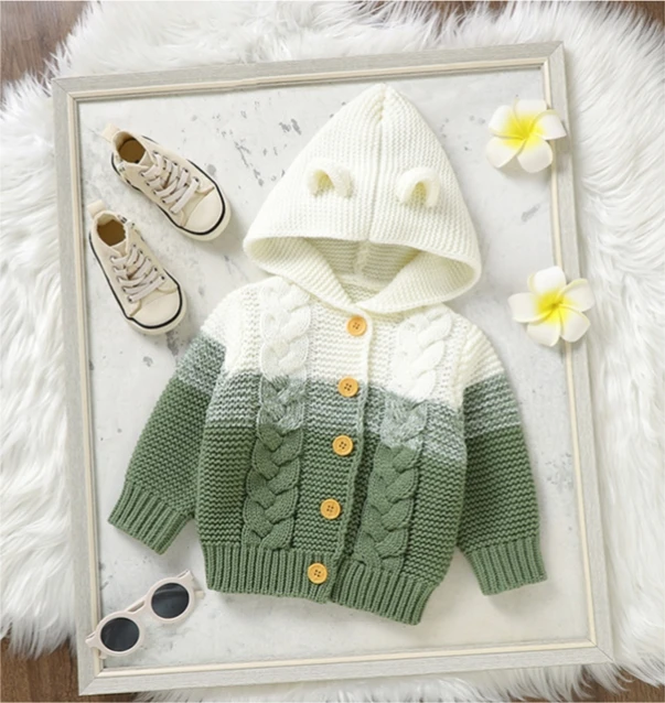 Winter Custom Casual Single Breasted Knitted Cardigan Baby Sweater Toddler Boys Girls Long Sleeve Hooded Coat