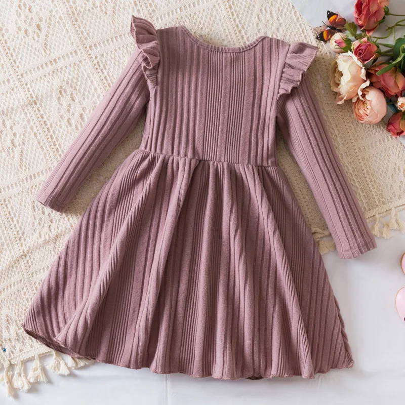 Kids Girls O-Neck Long Sleeve Regular Sleeve Sweet Style 3D Pattern Knee-Length Autumn Christmas Dress