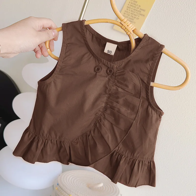 Summer New Girls Casual Style 3-Piece Fashion Suit Set Sleeveless Doll Shirt Wide-Legged Pants Hat-Hot Sale for Children