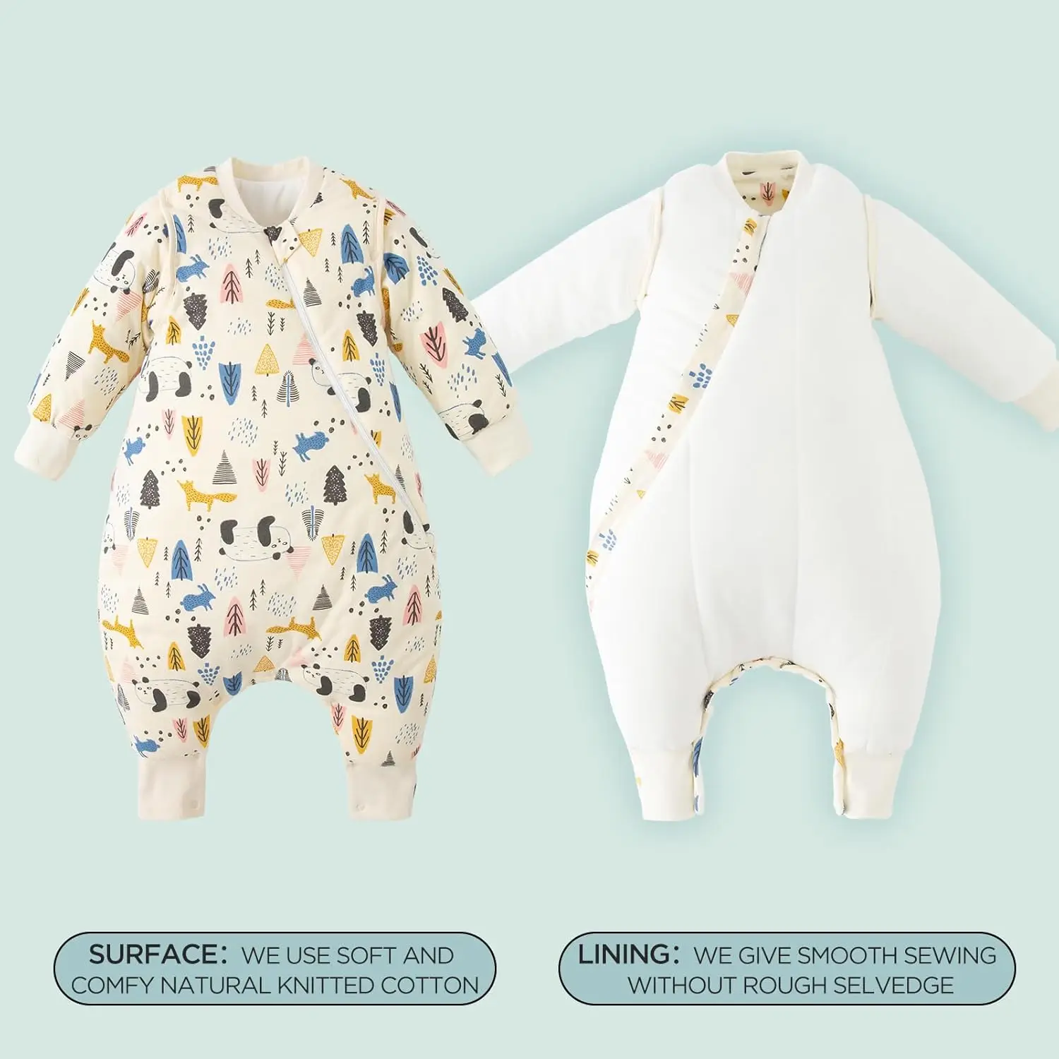 Unisex Baby Sleep Bag 3.5 TOG 100% Cotton Winter Toddler Sleep Bag Feet Long Sleeve 2-Way Zipper Early Walkers