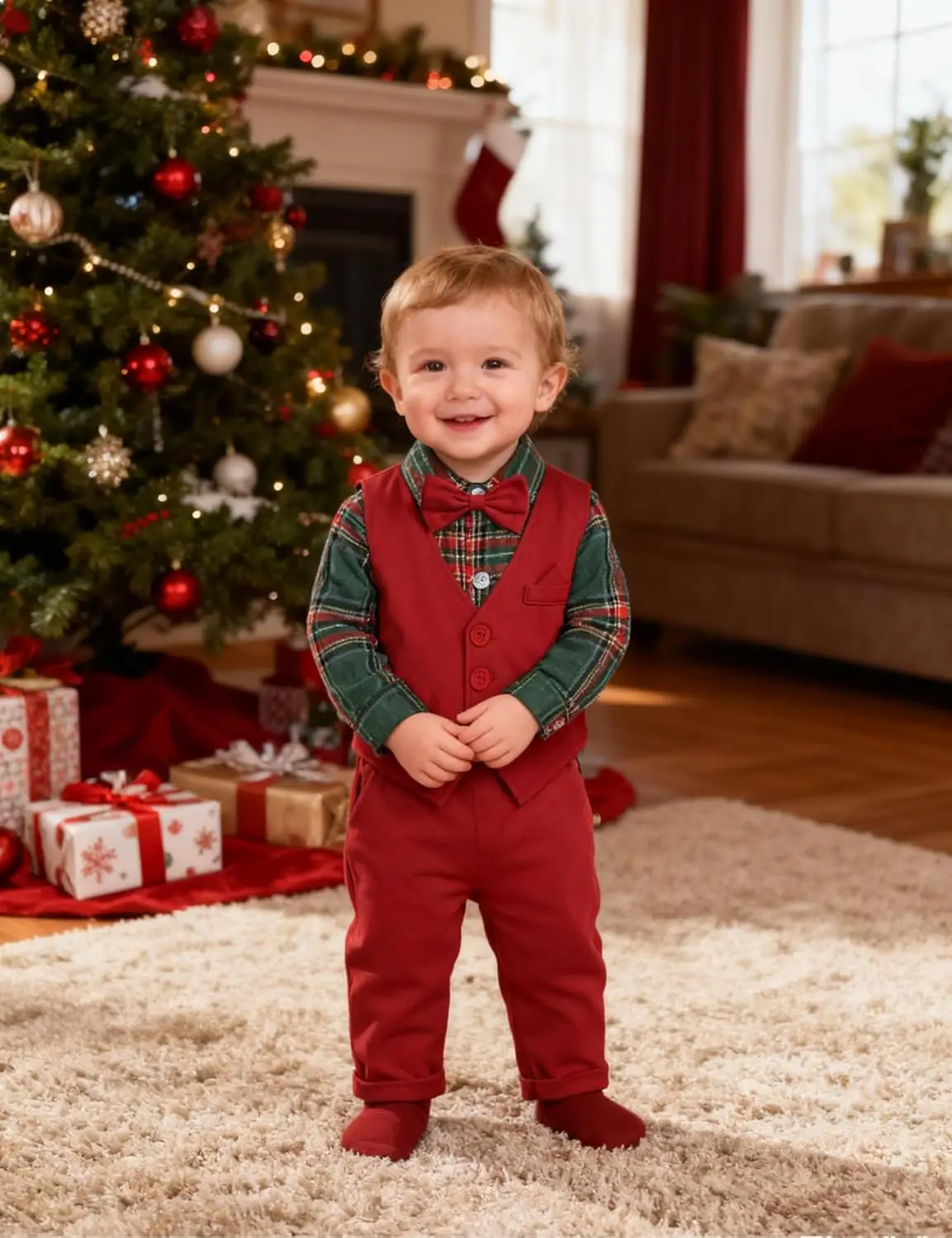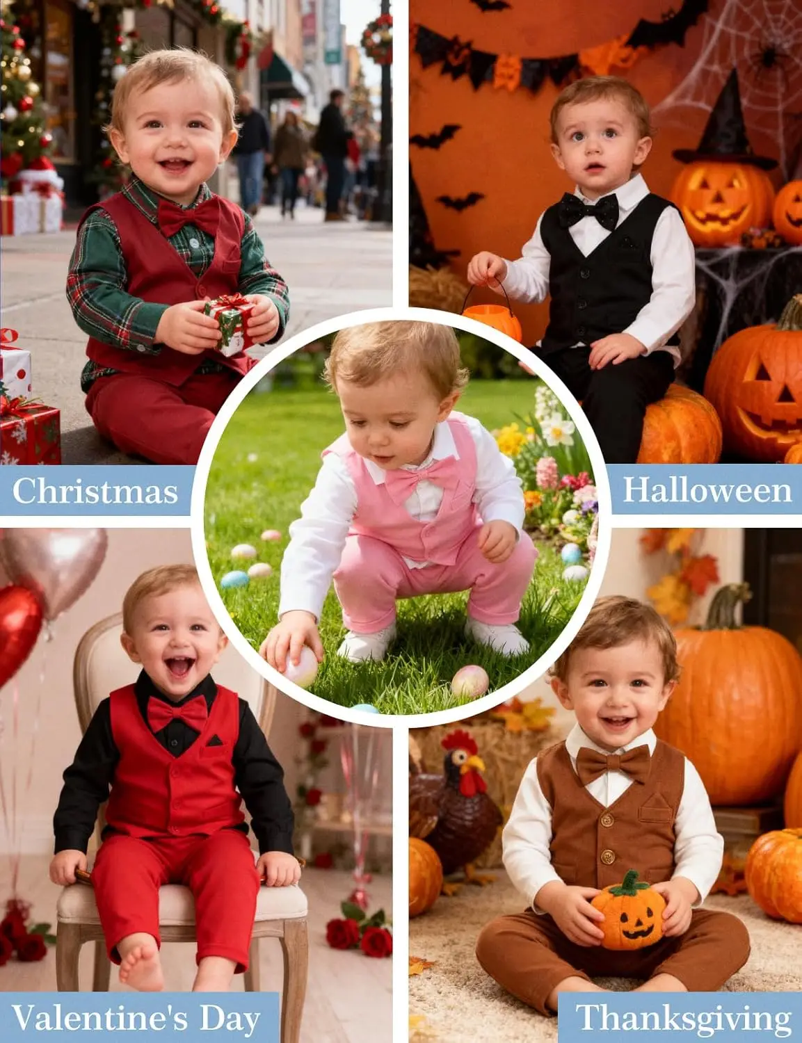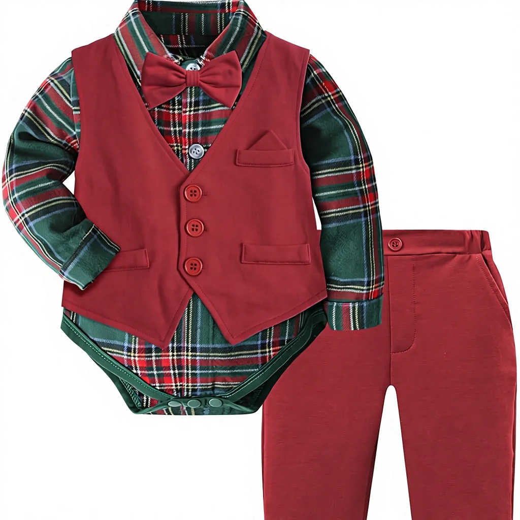 Baby Boy Formal Gentleman Wedding Suit Clothes Set with Dress Shirt Vest Bow Tie Pants