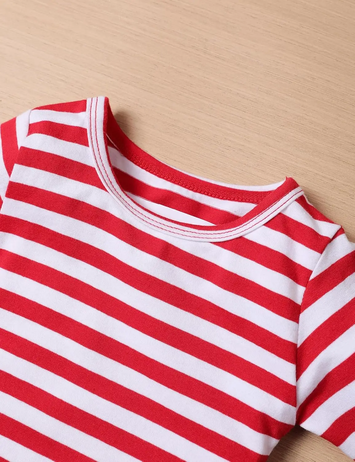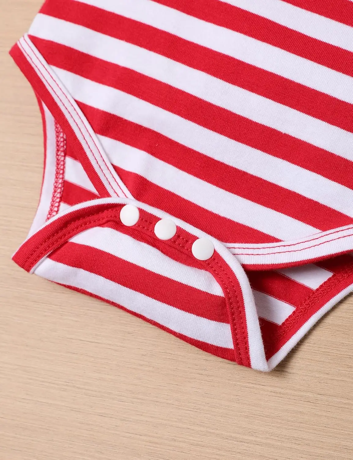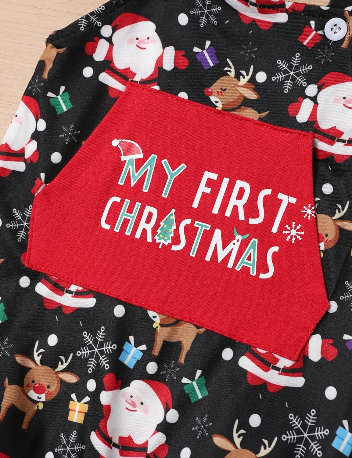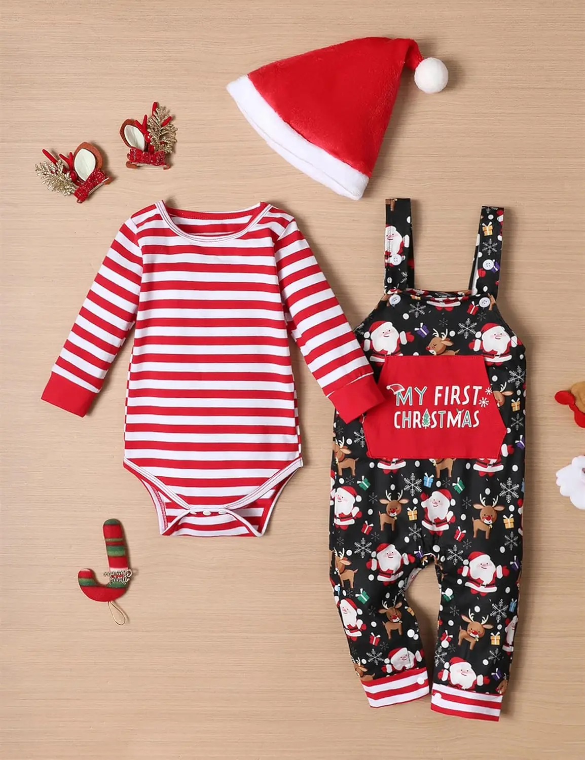 Baby Boy My First Christmas Thanksgiving Outfit Striped Romper Suspender Pants Hat 3PCS Clothes 0-18 Months Made China
