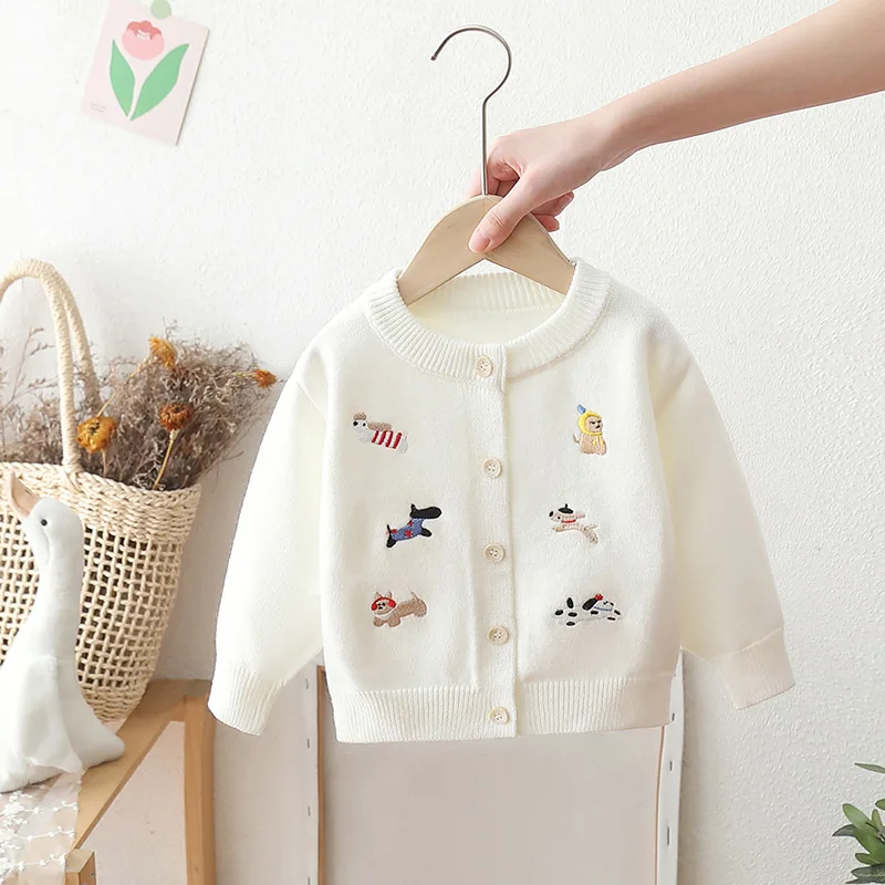 New Unisex Children's Cartoon Sweater Coat Autumn Girl's Embroidered Puppy Knitted Loose Boy's Red Cardigan