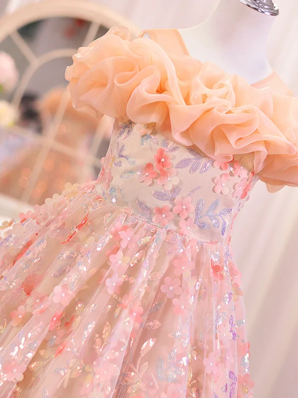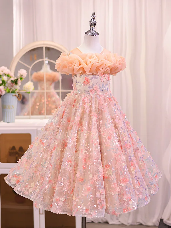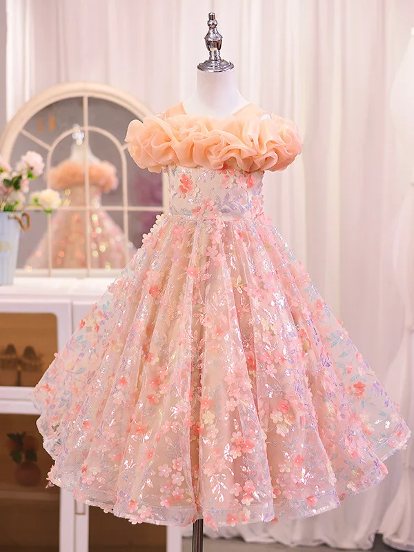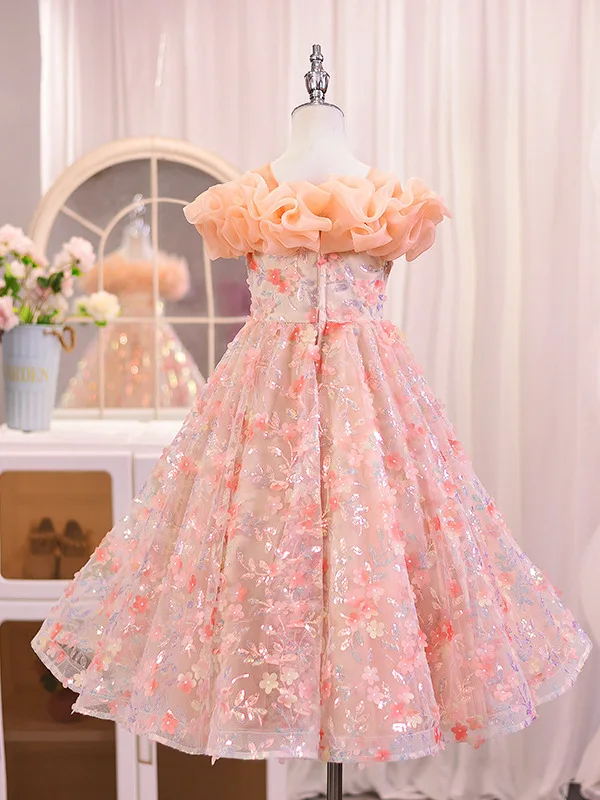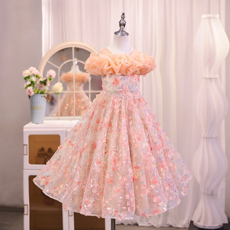 Girls' Summer Sweet Mesh Cute Princess Dress for Flower Girl Children's Day Performance Western Style