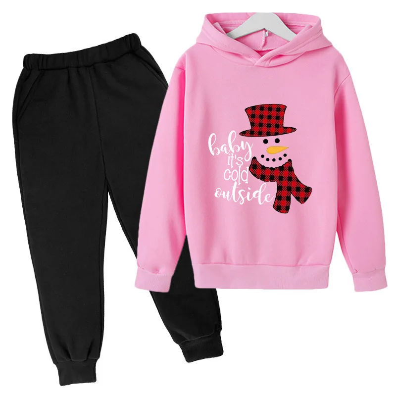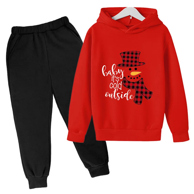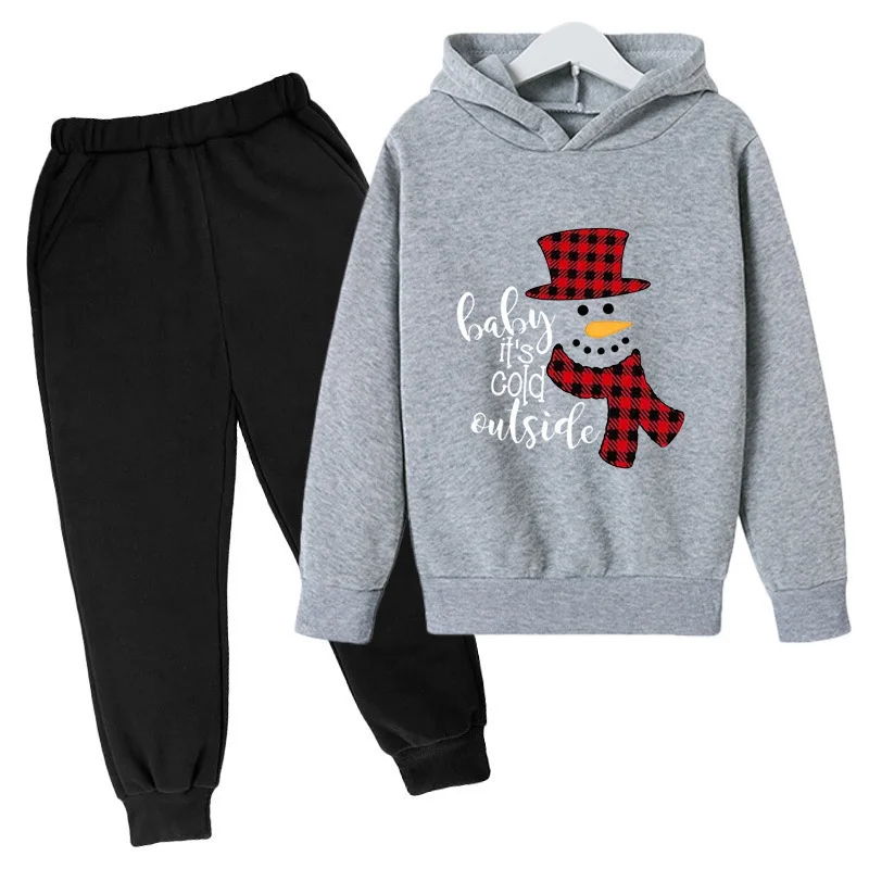 Hooded Fleece Sweater Set for Boys and Girls Christmas Snowman Design Polyester Fiber Material