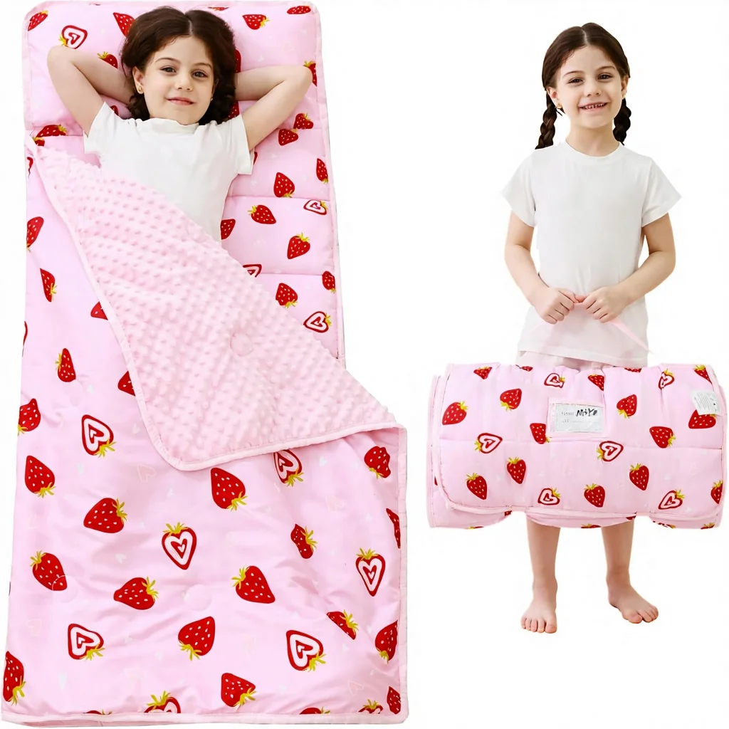 Toddler Nap Mat Pillow Blanket Extra Large Rolled Slumber Bags for Boys Girls Winter Kids Sleeping Bag for Daycare