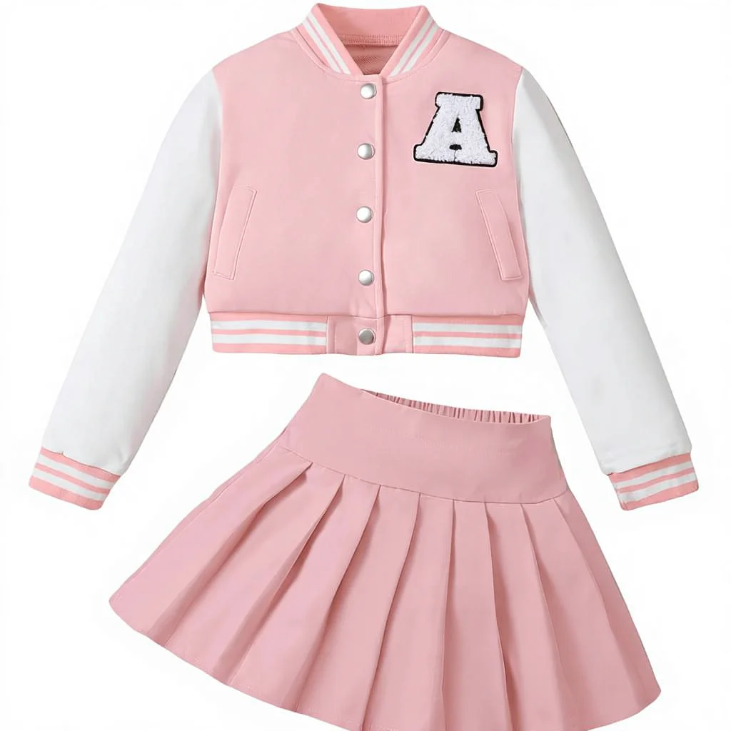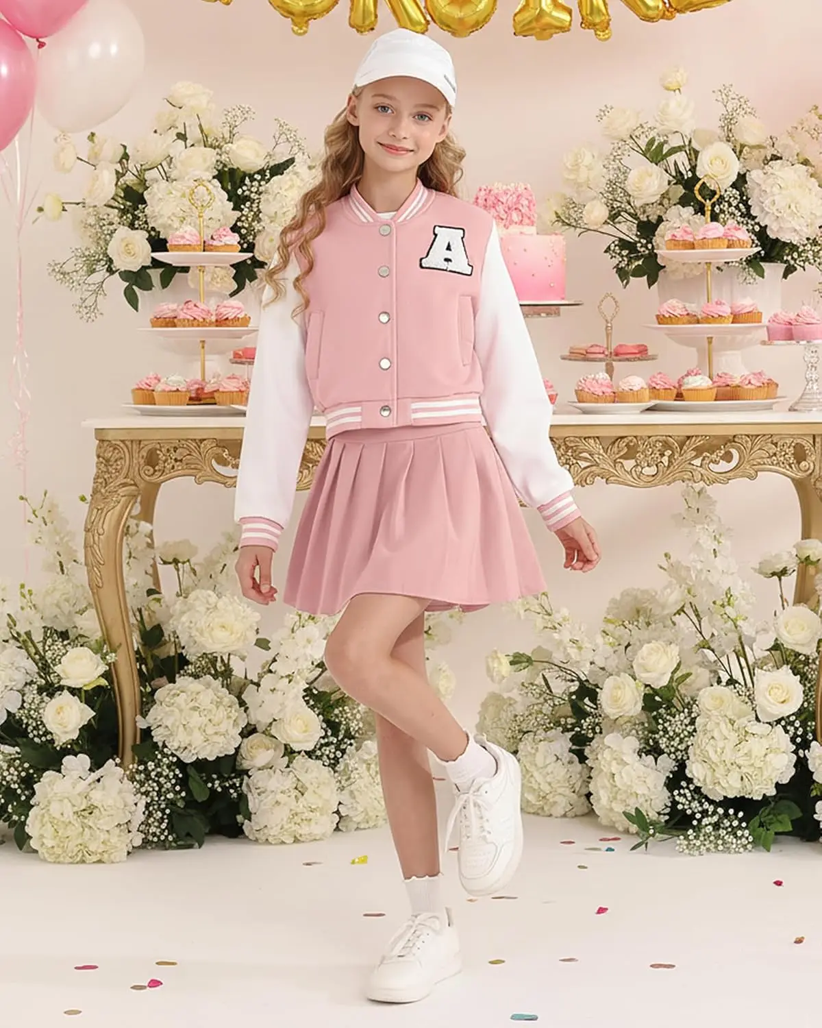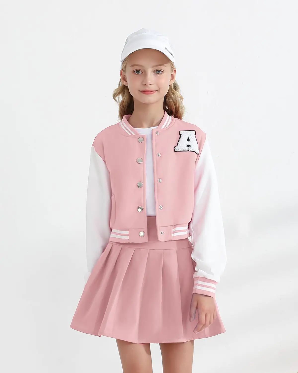 YOURUIKEY Girls 2-Piece Outfits Skirt Set Button-Up Jacket Sweatshirt Pleated Mini Skirts Fall Winter Clothes Size 7-14Y Made