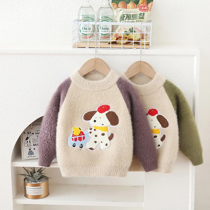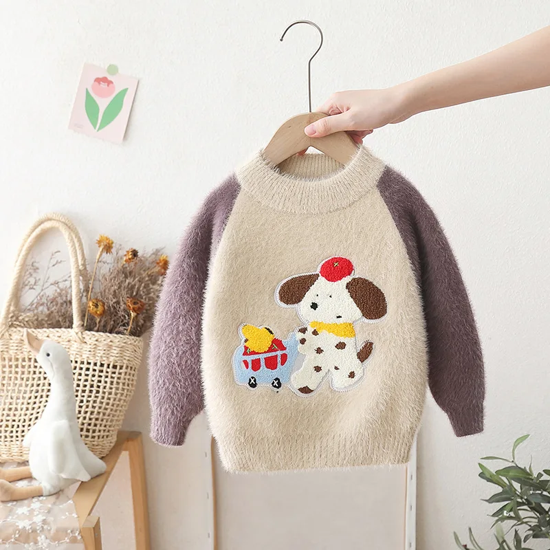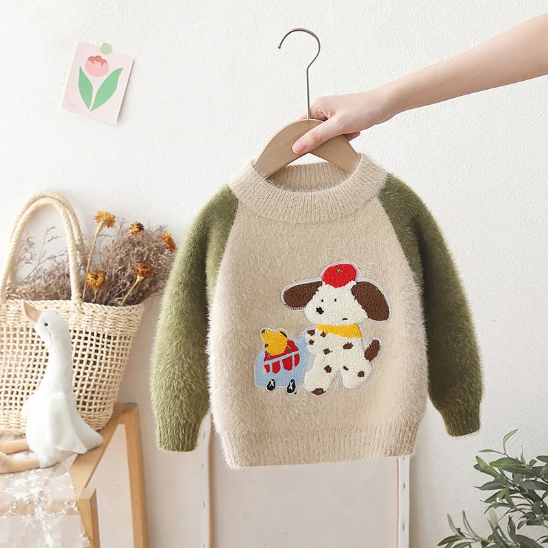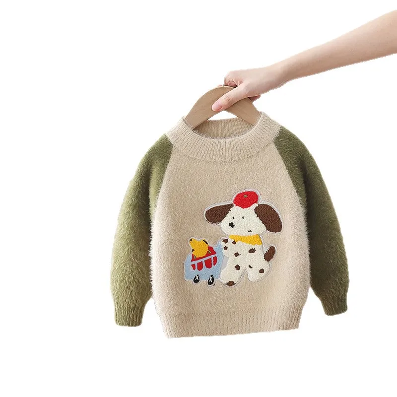 Boys' Sweater Pullover Korean Style New Arrival 2026 Autumn Winter Children's Thickened Warm Soft Treatment Crewneck Cartoon