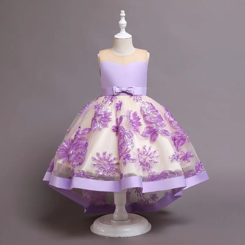 Girls' Embroidered Three-Dimensional Flower Trailing Multi-Level Mesh Princess Cotton Polyester Banquet Birthday Dress