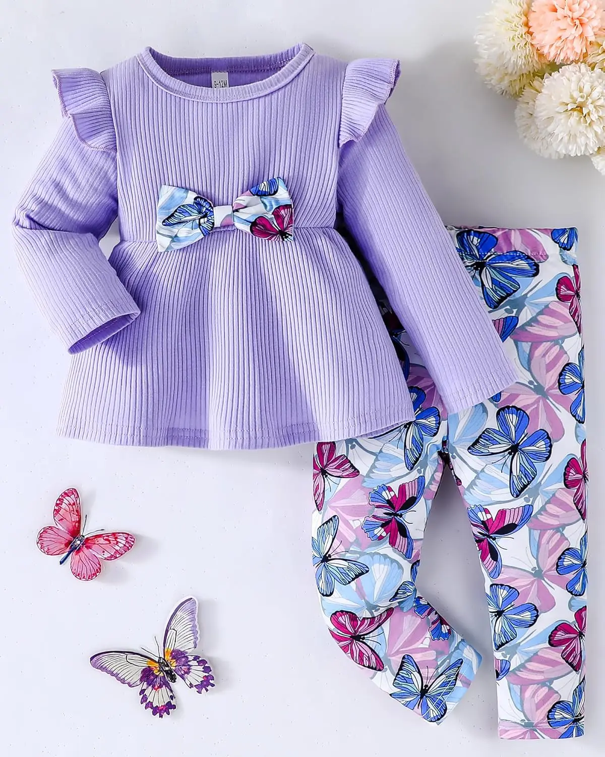 Toddler Baby Girl Clothes Cotton Soft Outfits Set A-Line Top Butterfly-Print Pants Cute Fall Home Outdoor Made China
