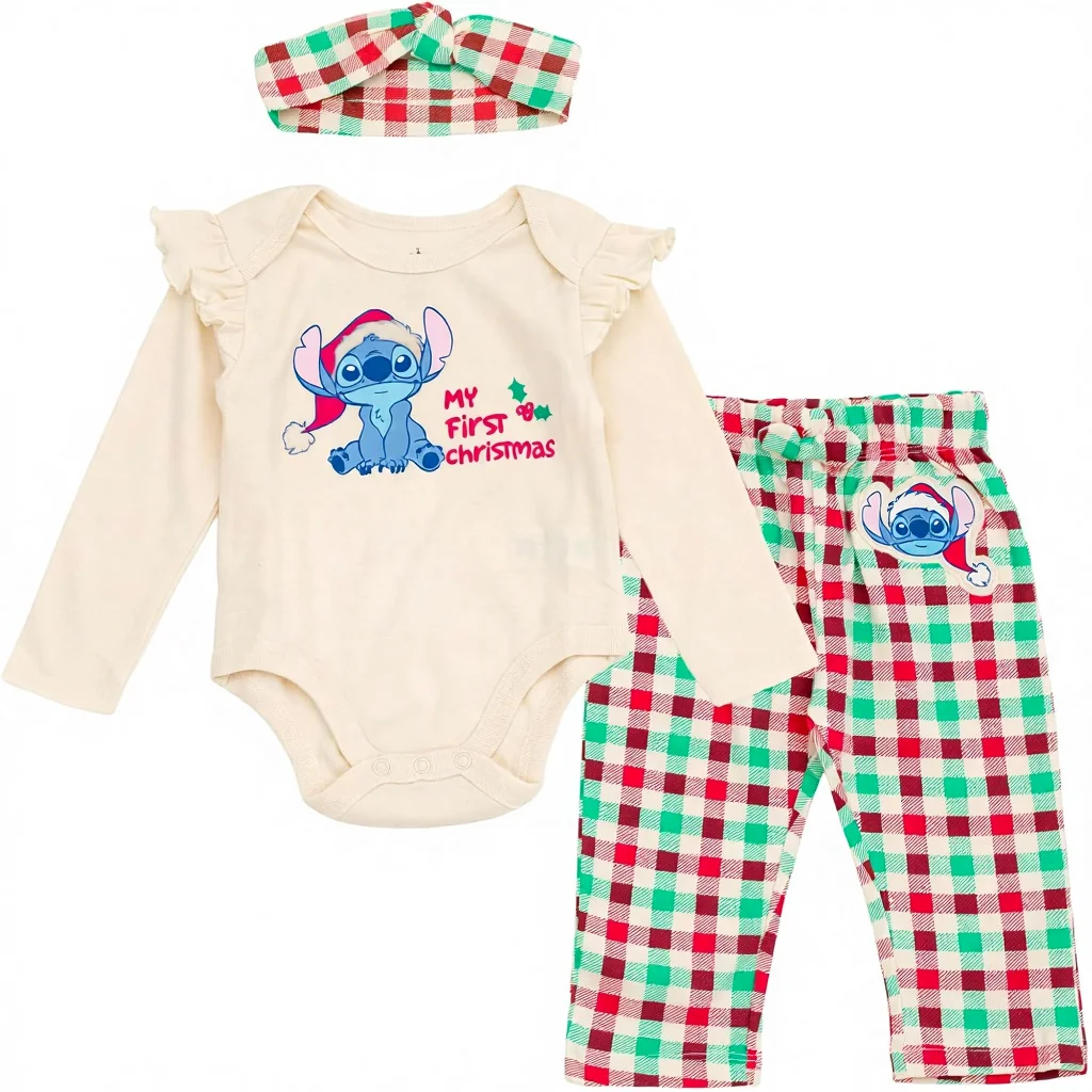 For Christmas Baby Girls Bodysuit Pants Headband 3-Piece Outfit Set Newborn to Infant Sizes (Newborn-24 Months) Made in China