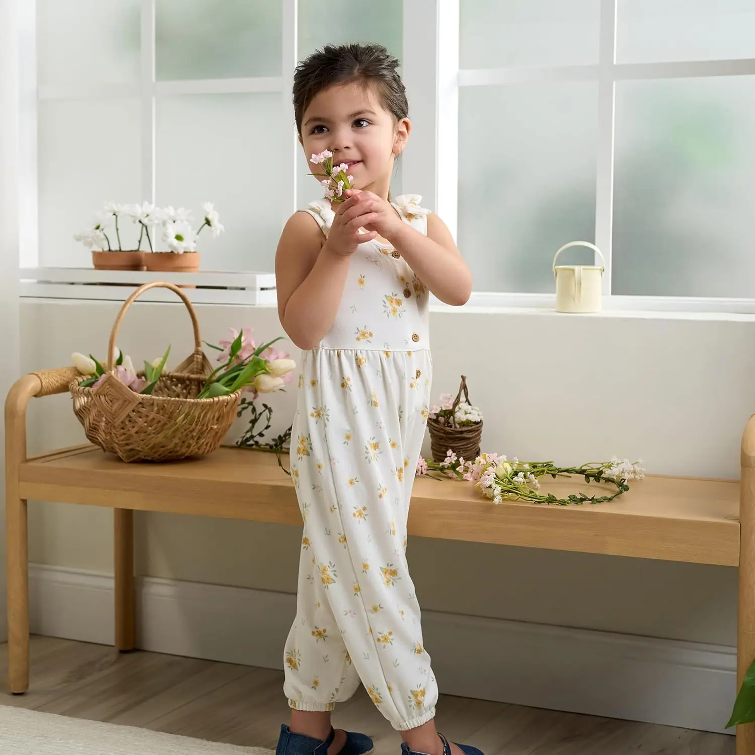 For Baby Girls' Toddler Floral Sleeveless Romper Jumpsuit