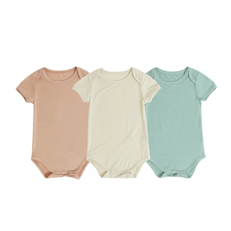 New Bamboo Fiber Fabric Baby Pajamas Solid Color Newborn Snap Suit Short Sleeve Popular Baby Romper