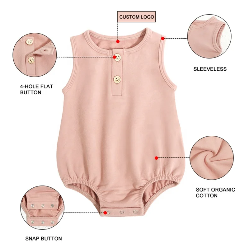 High Quality Organic Cotton Bubble Romper Sleeveless Newborn Baby Bodysuits