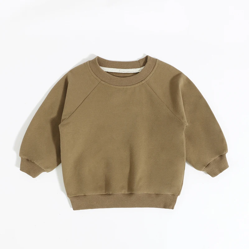 Organic Cotton Tops Infants O-neck Solid Color Baby Top Long Sleeve French Terry Children Clothing Girls Kids Sweatshirt