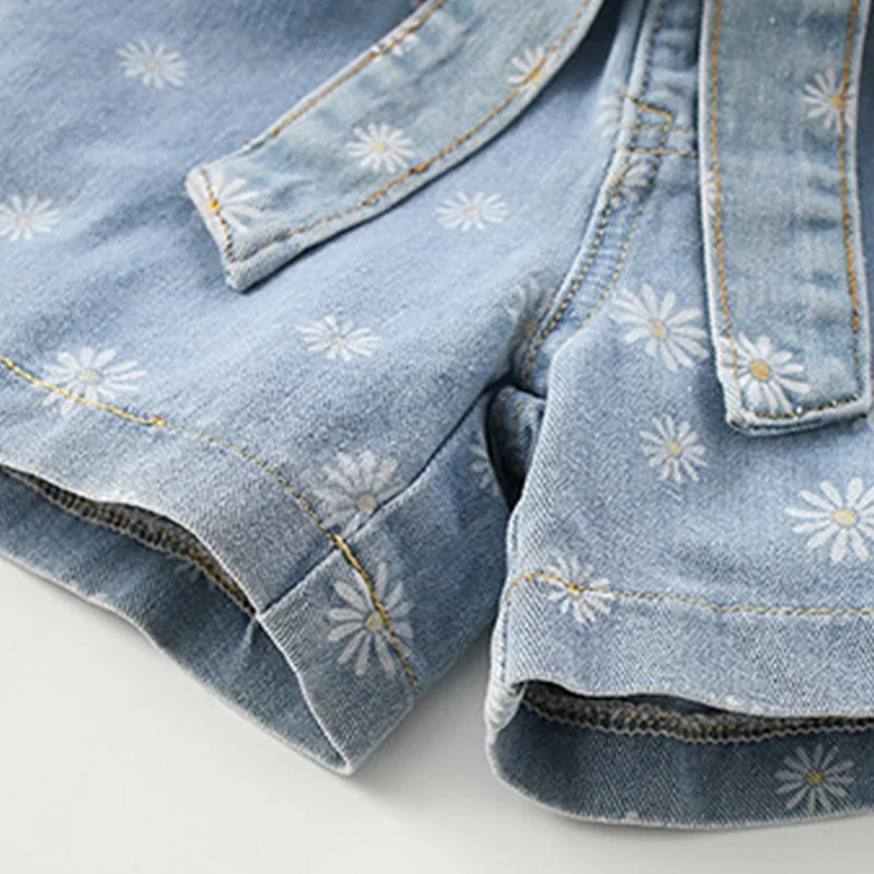 Customizable High Quality Elastic Waist Girls Shorts for Kids Summer Wear Printing Jeans for Girls