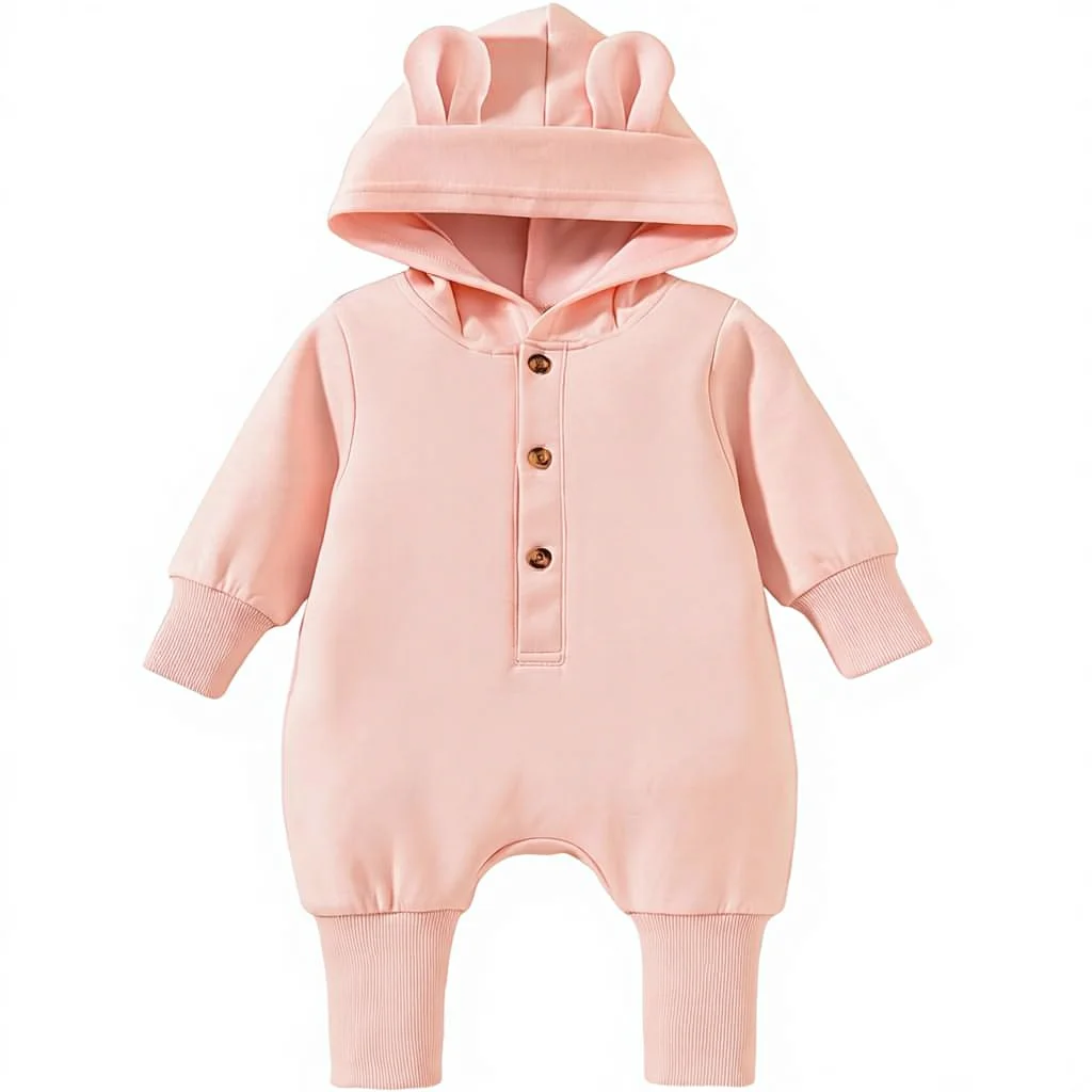 Unisex Baby Solid Hooded Jumpsuit Infant Boy Girl Long Sleeves Romper Fall Winter Spring Outfits Preemie-18 Months