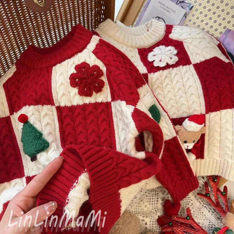 Children's a Knitted Sweater 2026 Autumn Winter Christmas New Year Cartoon Boys Girls Baby Warm Top