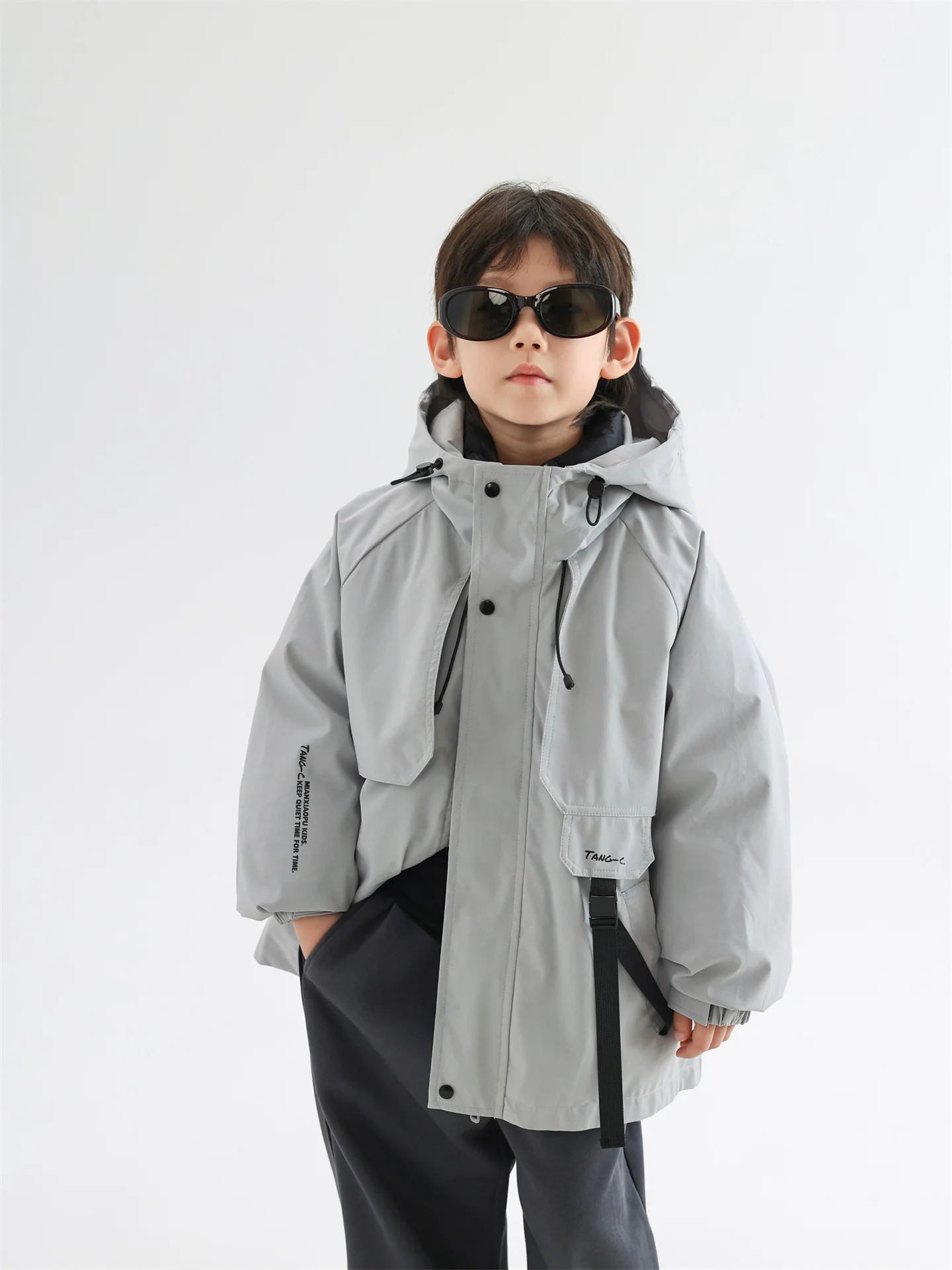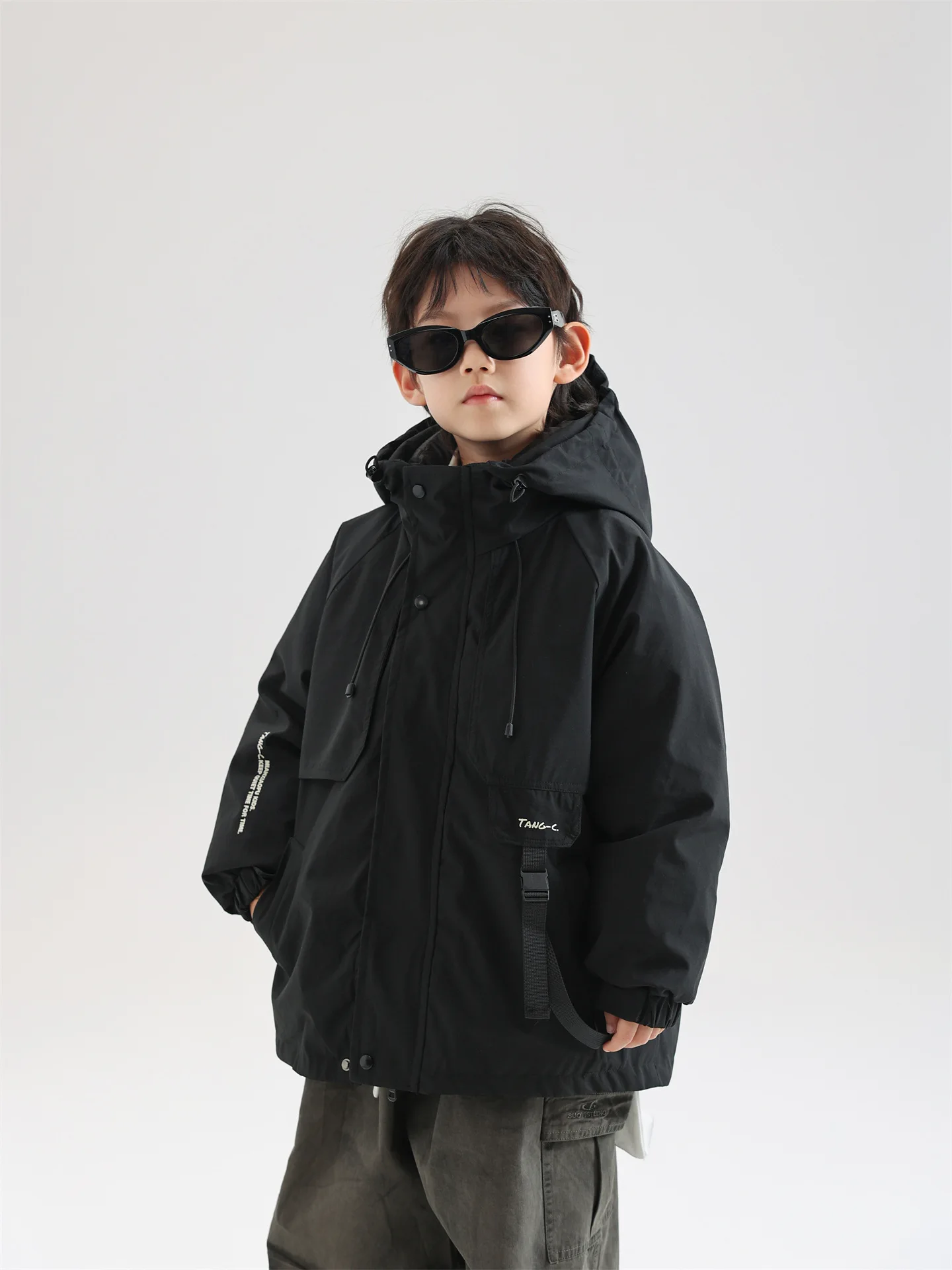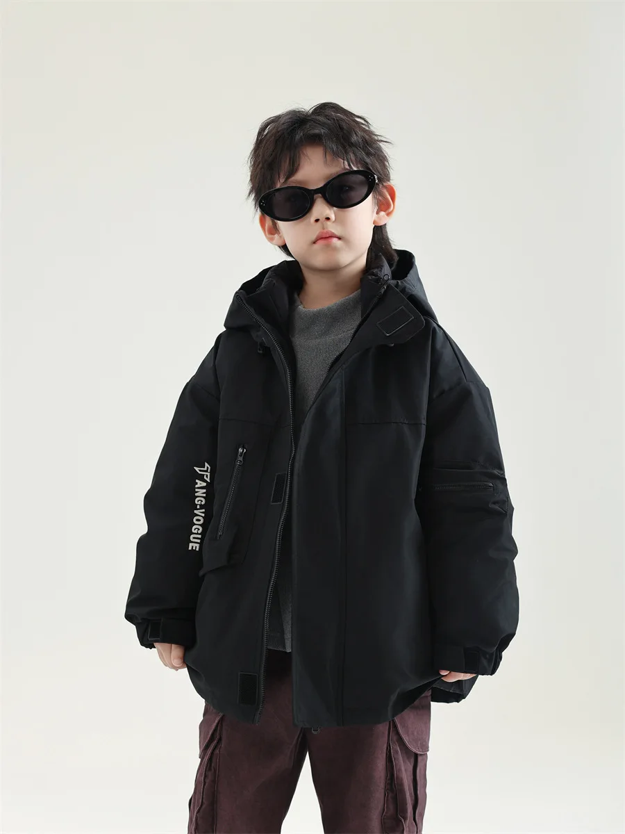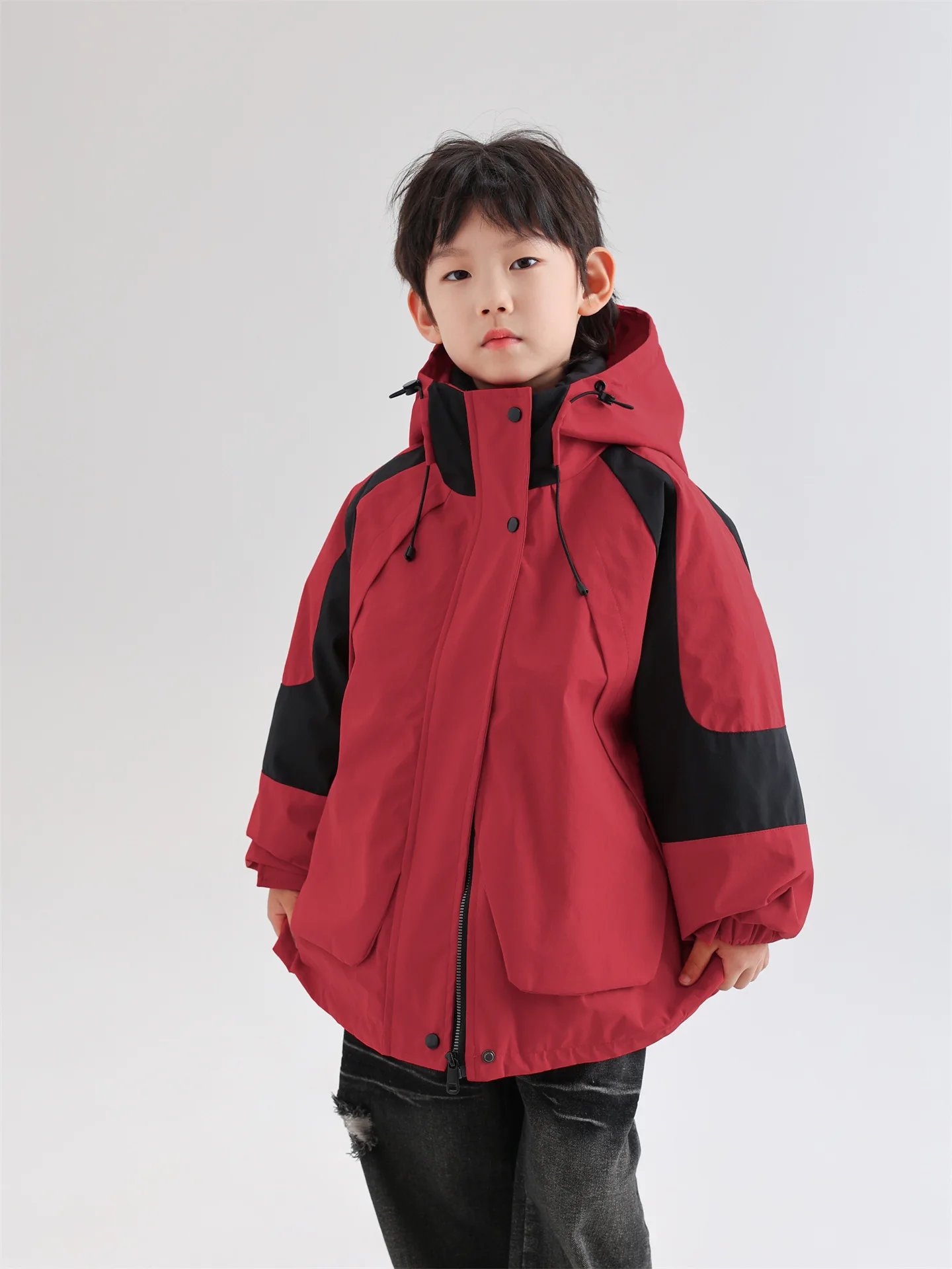 Kids' Thermal Snow Jacket with Hood-Lightweight Waterproof Breathable Polyester Insulated Zipper Closure
