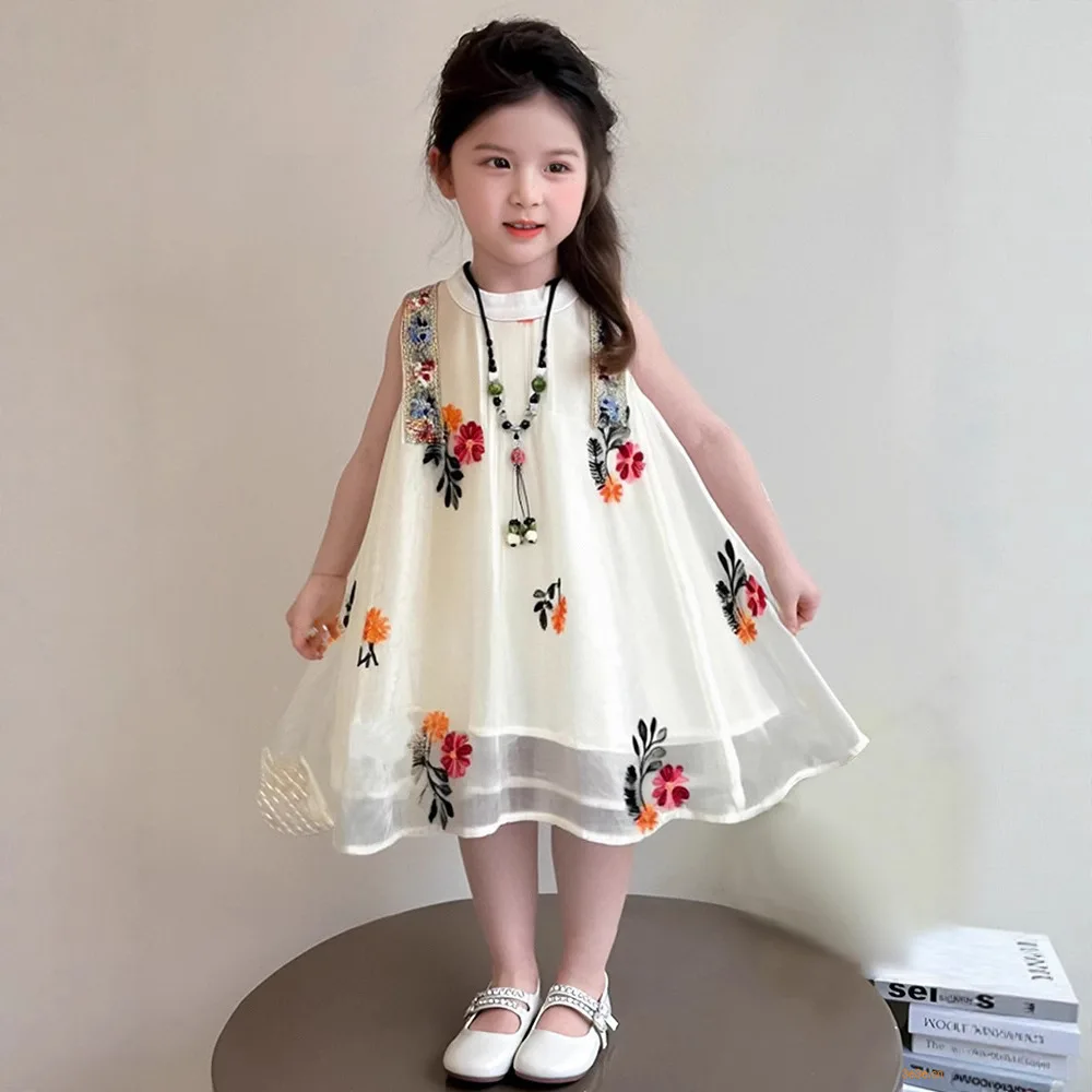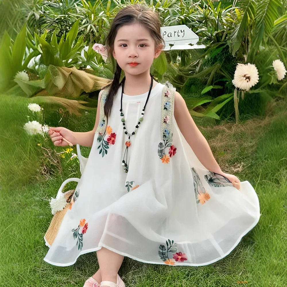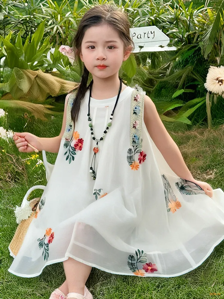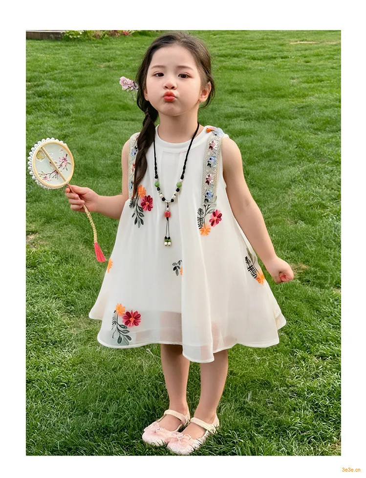Sweet Princess Vest Dress for Girls 2-8 Years Old New Summer Ethnic Style Breathable O-Neck Casual Print Eco-Friendly A-Line