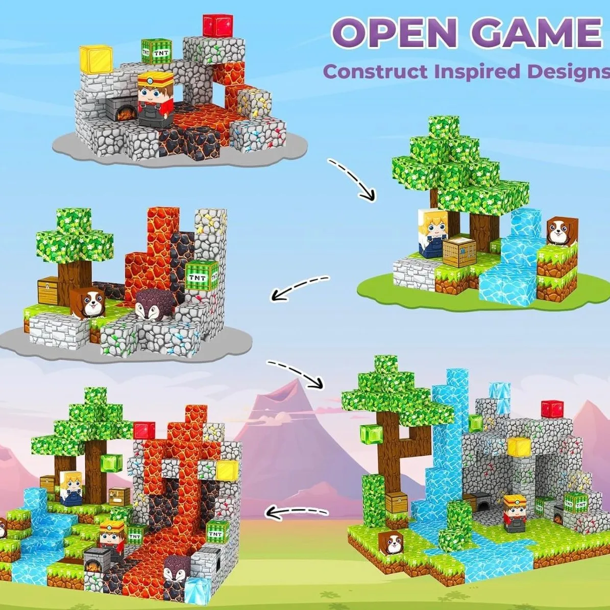 Magnetic Plastic Building Blocks Set for Children Jungle Theme Educational Toy Model