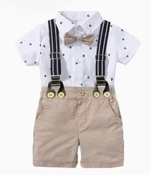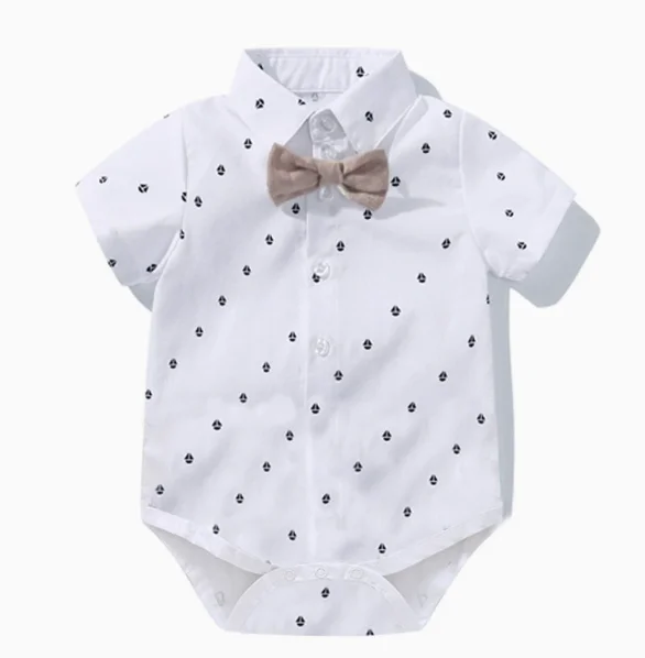 2026 Baby Boy Formal Romper Sets with Short Sleeve Summer Wedding Clothing for Toddlers Aged 3 6 9 12 18 24 Months Includes Hat