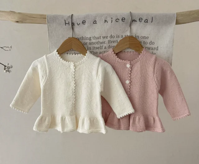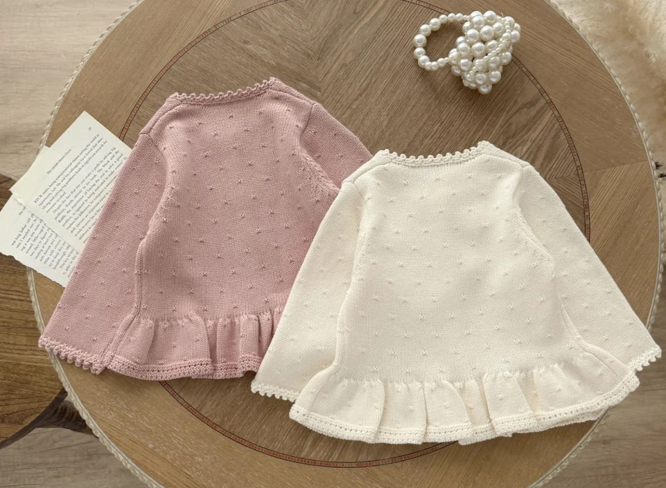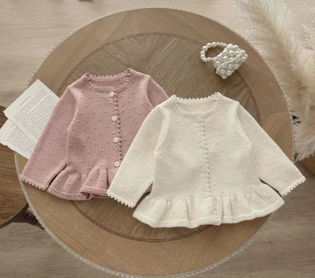 Stylish Girls' Autumn Cardigan Long Sleeve Solid Color Sweater with Turtleneck Collar and Button Closure