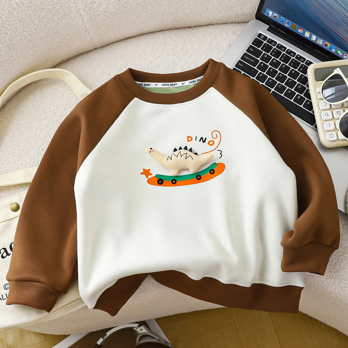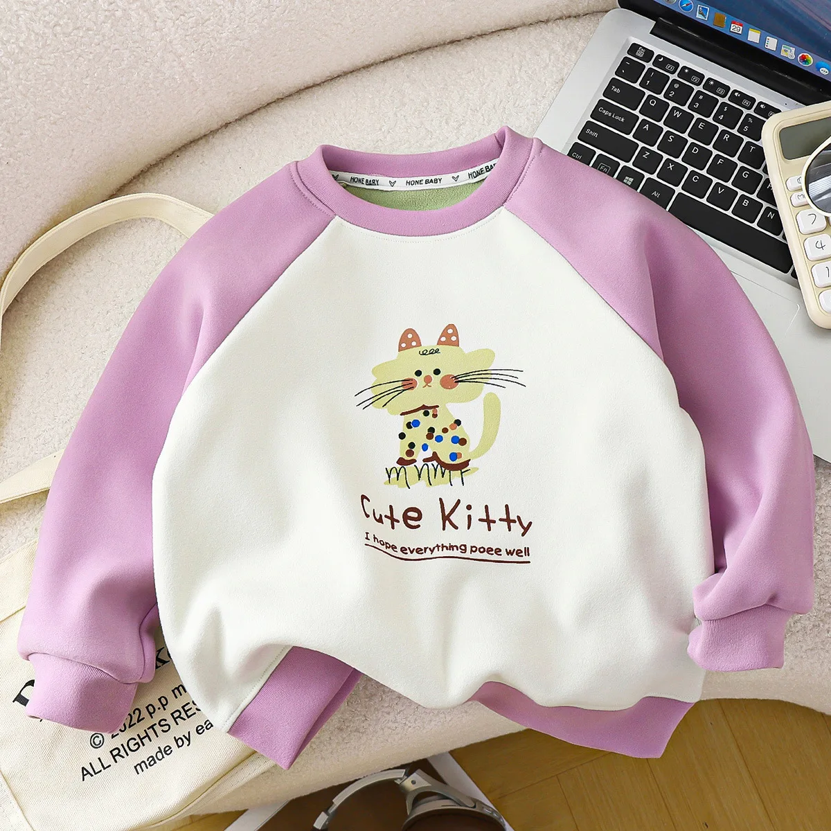 Children's Long Sleeve Top Apparel Customizable Plain Washed Ripped Tee Basic Layering Shirt Multi Colors
