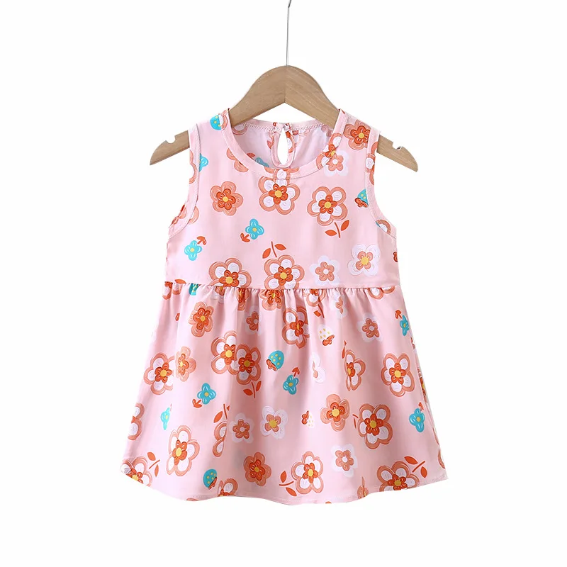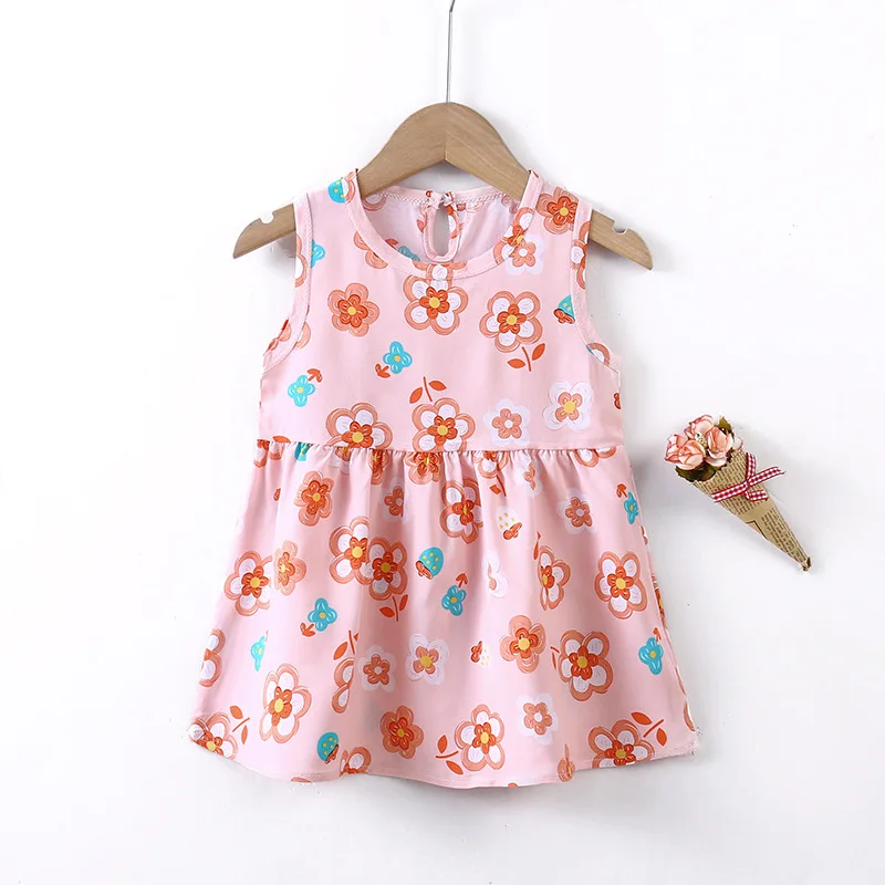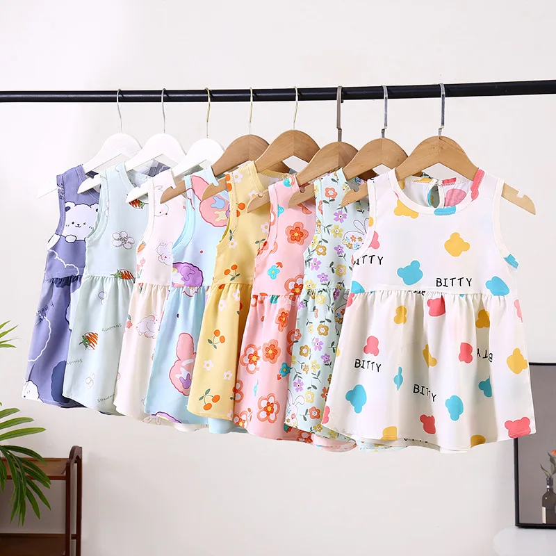 Children's Dress Girls Cotton Silk Princess Dress Crew-neck Floral Sundress Nightdress