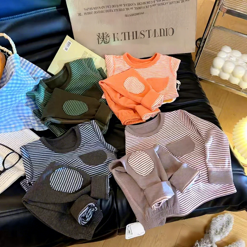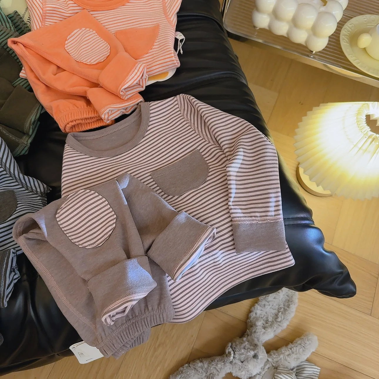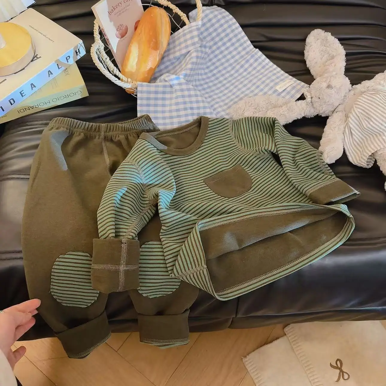 Children's Thick Downy Underwear Set - New Fall/Winter Style - Striped Boys' and Girls' Pajamas - Junior Homewear