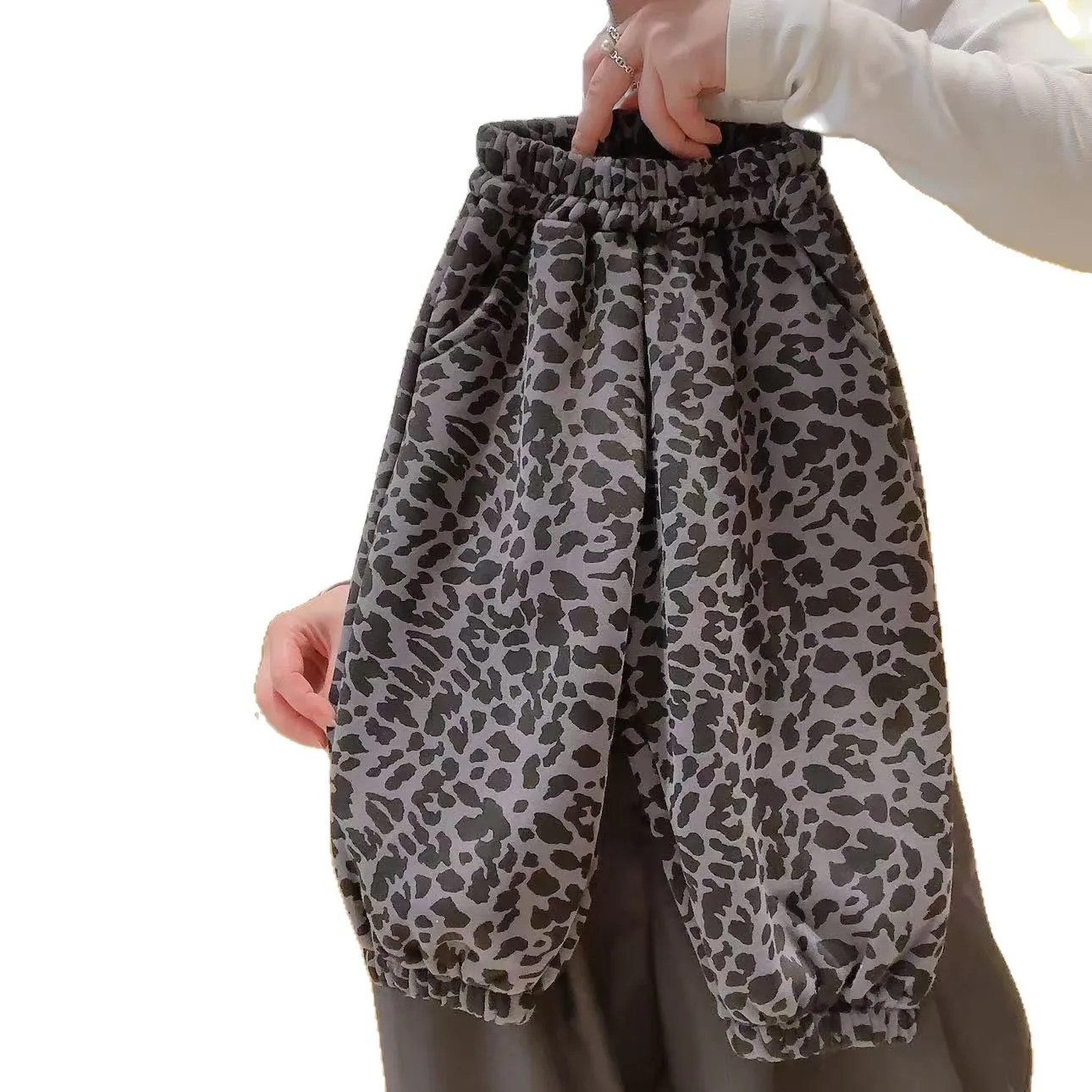 New Trendy Casual Men's and Women's Round-neck Sweater and Pants Children's Set for Autumn - Leopard Print Two-piece Set