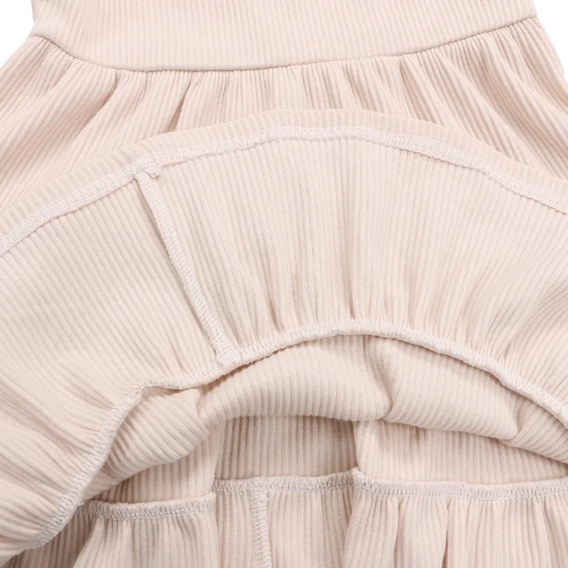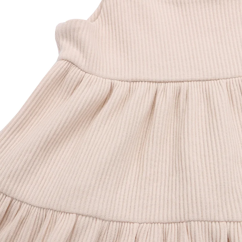 New Design Baby Clothing Rib Fabric Plain Color Flare Sleeve Design Girls Dress