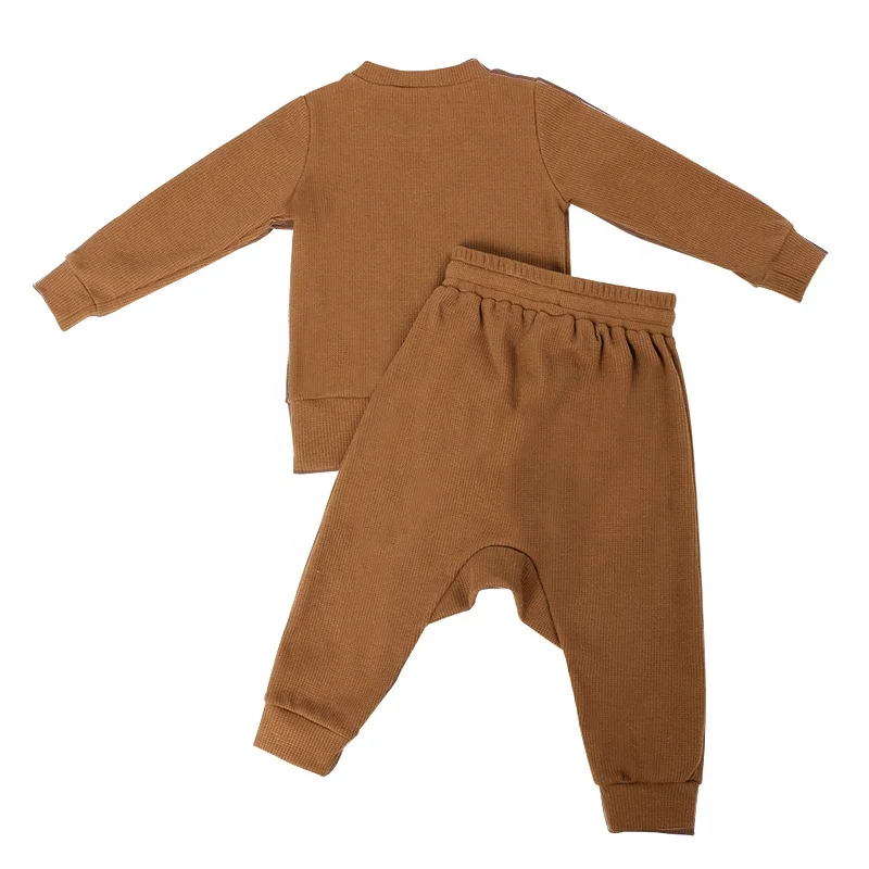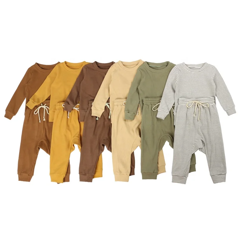 Wholesale Kids Clothes Solid Thick Ribbed Cotton Fabric Kid Set Girl Fall Set Girls' Clothing Sets