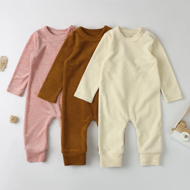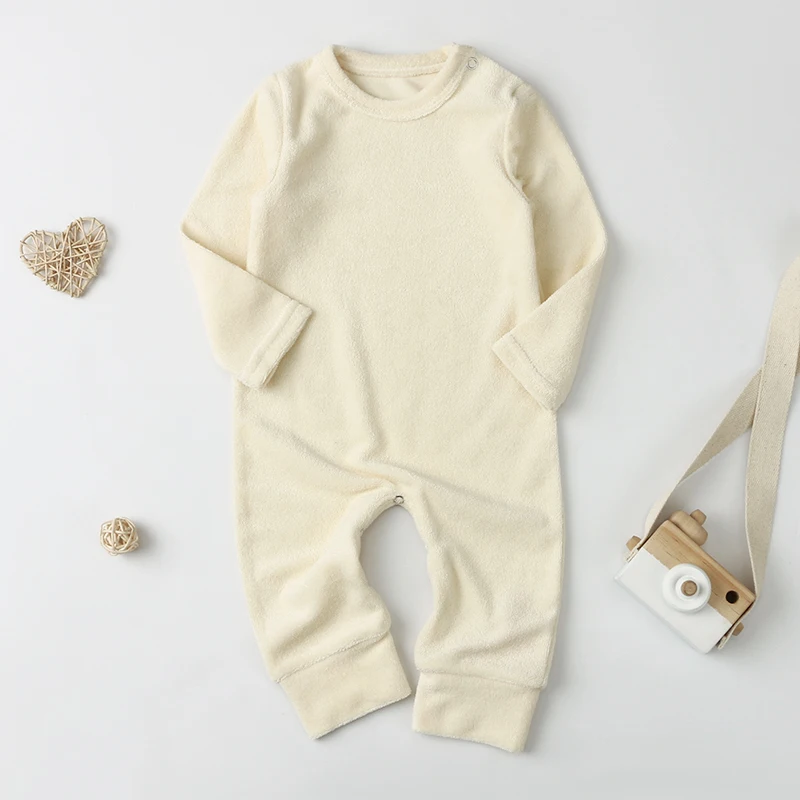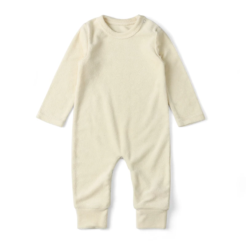 Infant Toddlers Long Sleeve Cotton Towel Terry Baby Kid Plain Onesie Jumpsuit Rompers