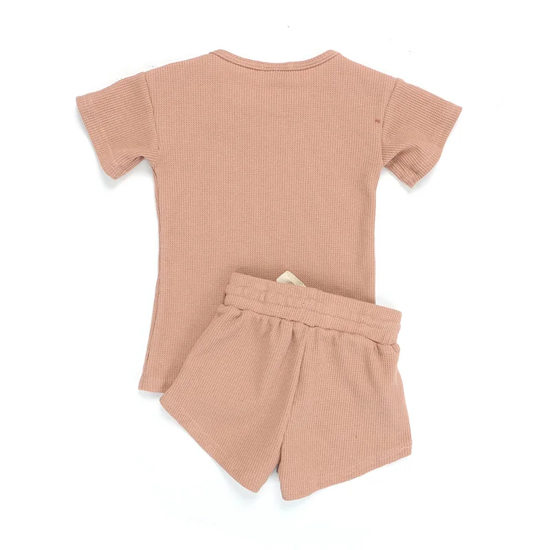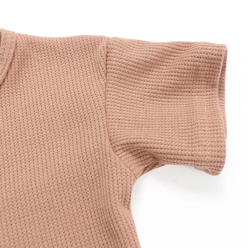 High Quality Waffle Cotton Baby Clothes Short Sleeve Sets Summer Infant Girls Outfits