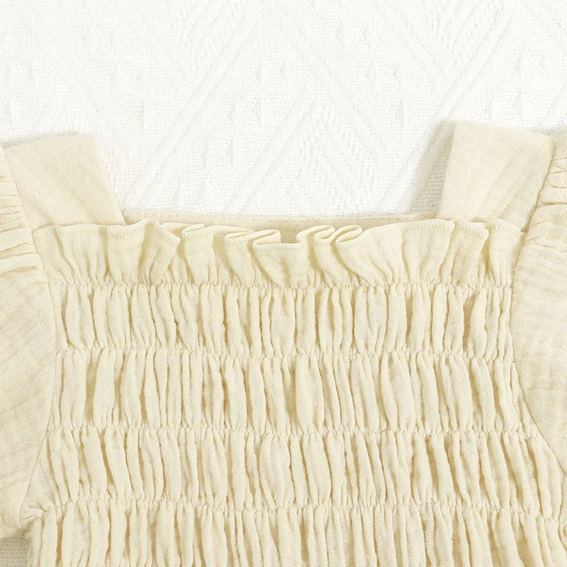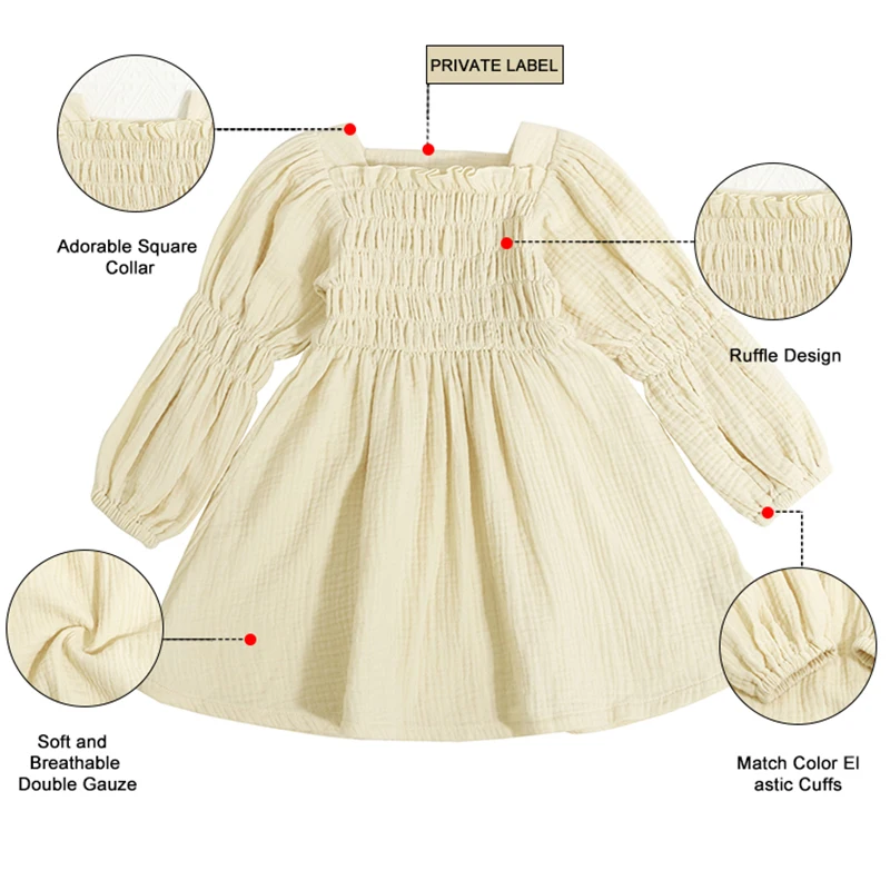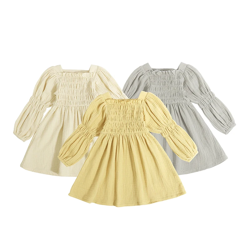 Top Sales Summer Double Gauze Children Skirt Adorable Square Collar Ruffle Design 100% Cotton Kids Girls Dress