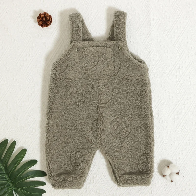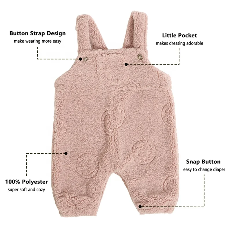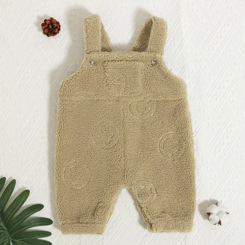 Wholesale Winter Teddy Baby Overalls Button Strap Design Neutral Jumpsuit Bubble Rompers