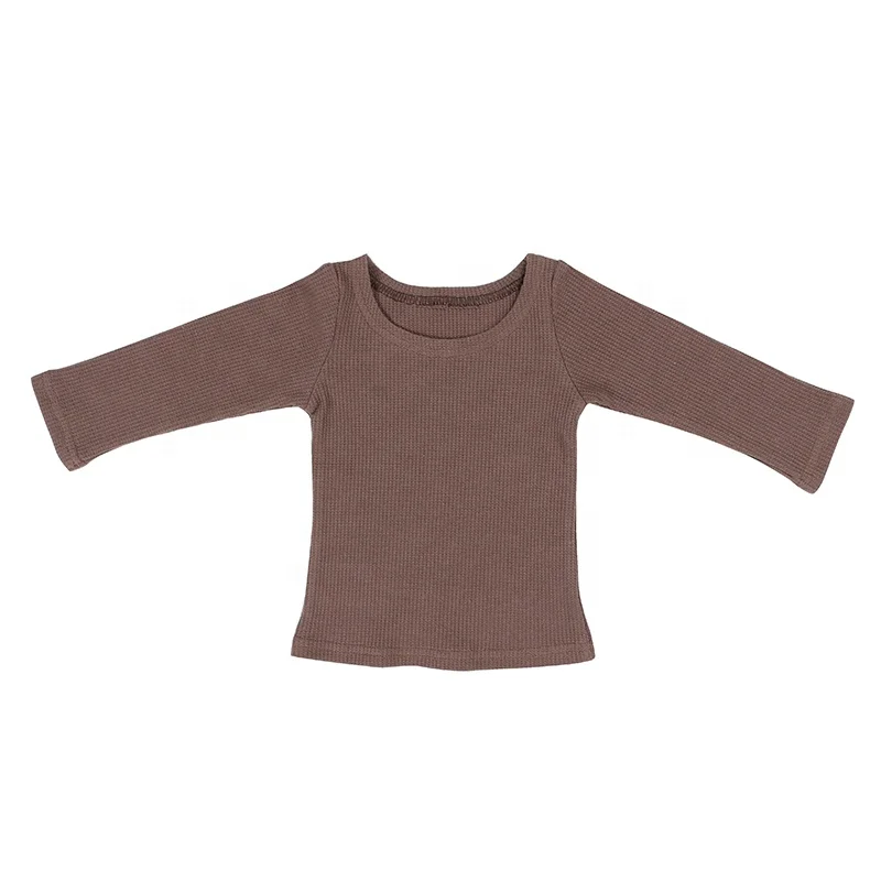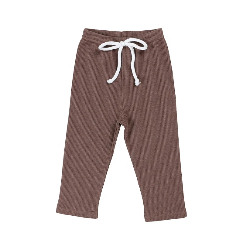 Wholesale Price Children Clothes Long Sleeve Simple Design Top&Bandage Long Pants Waffle Cotton Baby Outfit