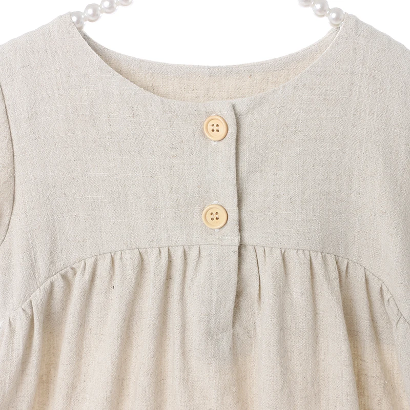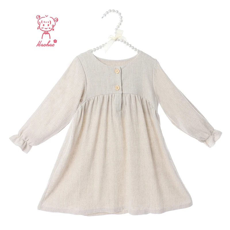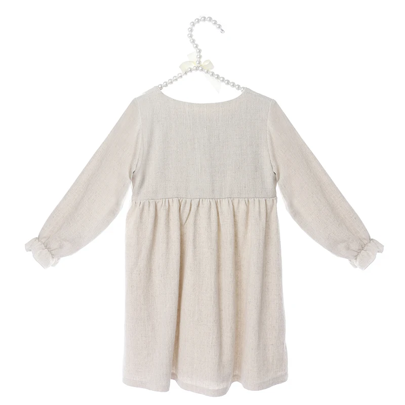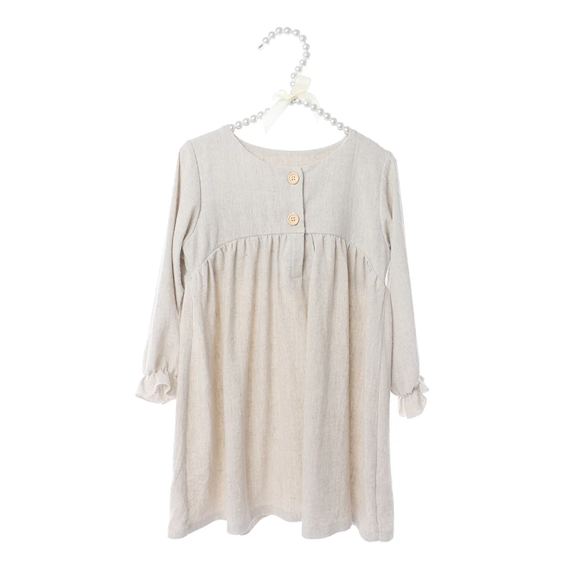 Boutique Kids Clothing Linen Cotton Long Sleeve Ruffle Girls Dresses