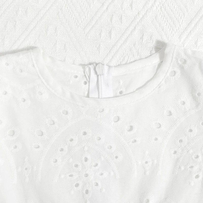 High Quality Hollow-out Baby Girl Skirt White Long Sleeve Factory Customized Children's Dress Baby's Clothing With Lace Woven
