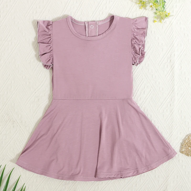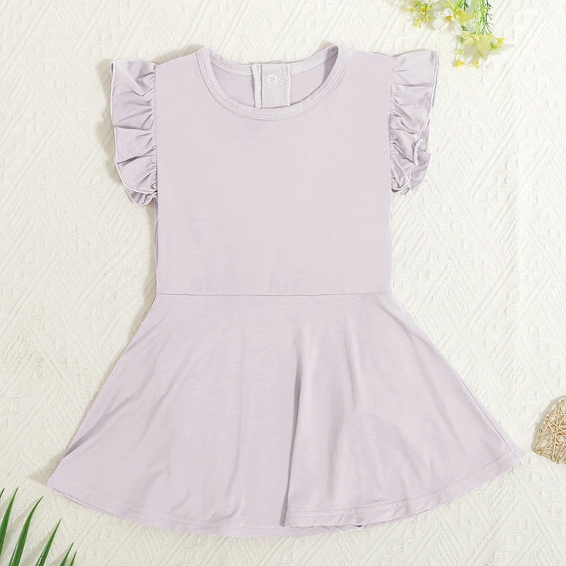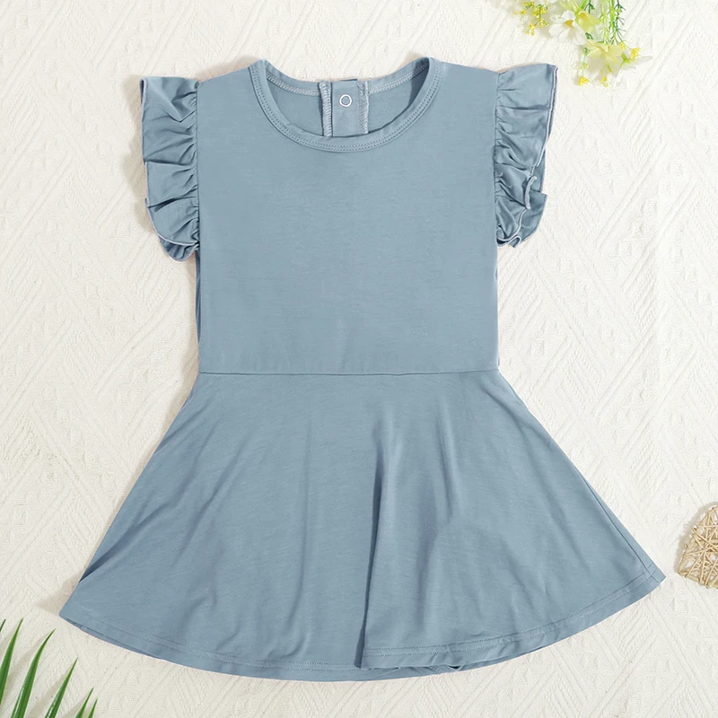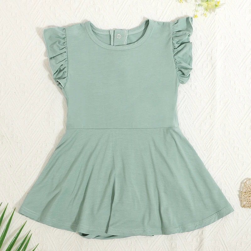New Materia Summer Toddler Rompper High-waisted A-line Design Ruffle Sleeve Bamboo Rayon Baby Girl Dress Bodysuit