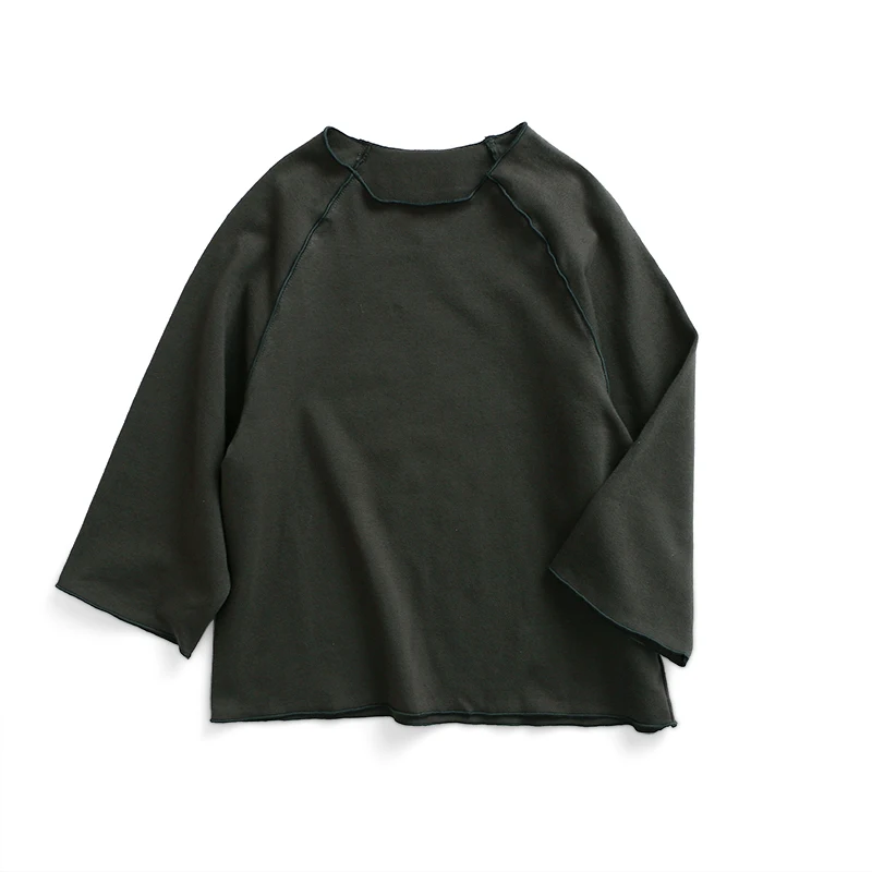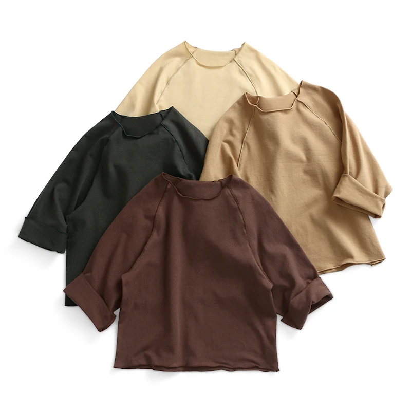 Children's Long Sleeve Top Apparel Customizable Plain Washed Ripped Tee Basic Layering Shirt Multi Colors