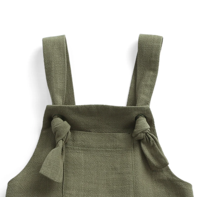Hot Sale Linen Newborn Baby Boy Clothes Romper Infant & Toddlers Summer Bodysuit Rompers with Buttons & Pocket