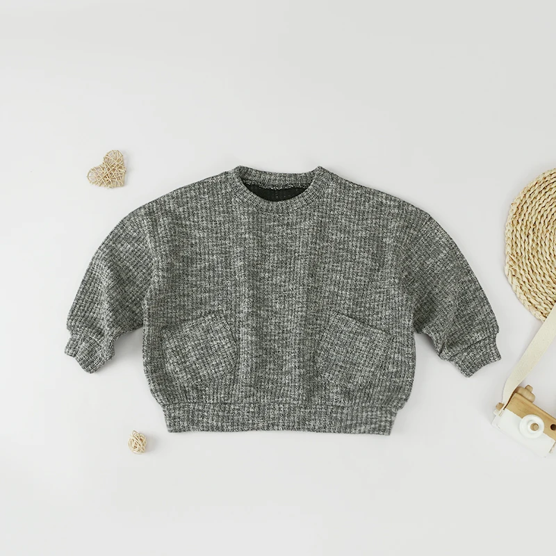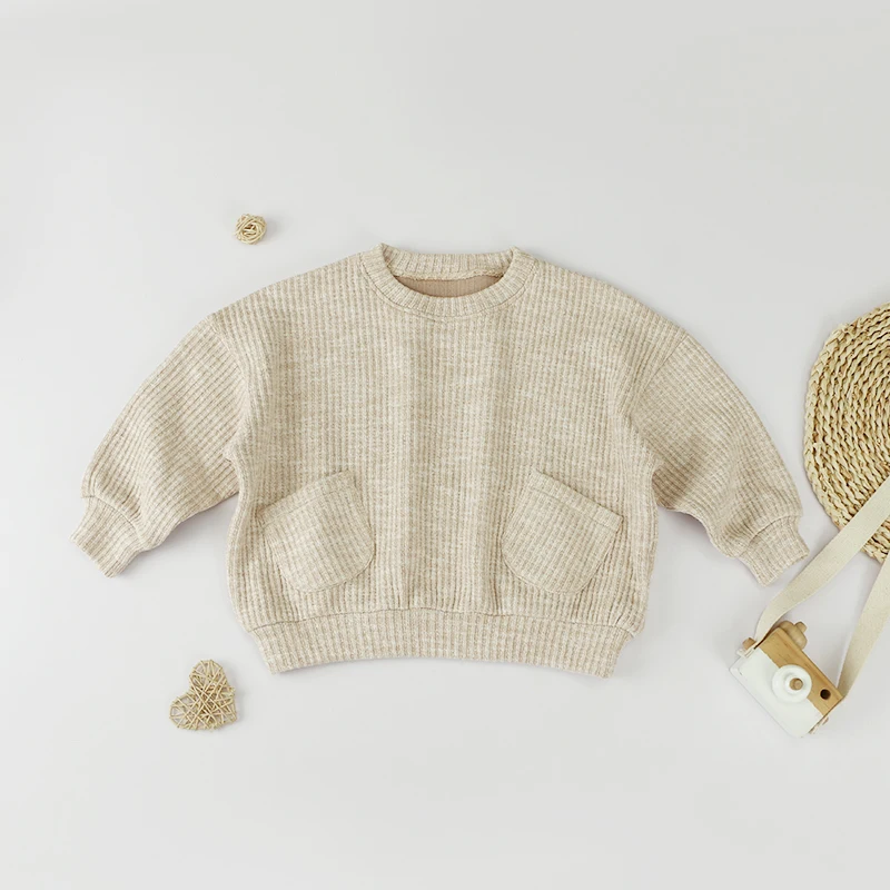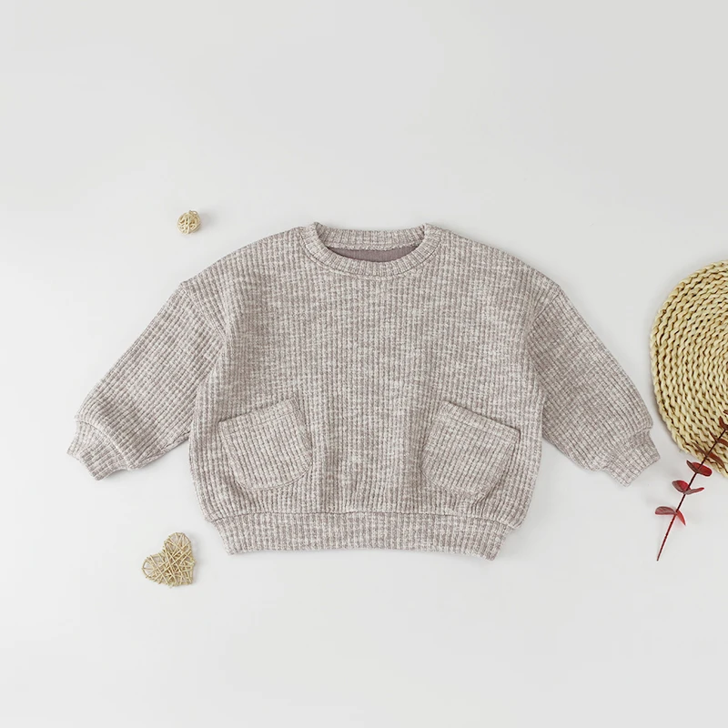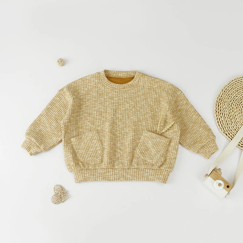 Boutique Kids Clothes Ribbed Fabric Kids Tops Baby Winter Jumper Baby Sweater With Pocket