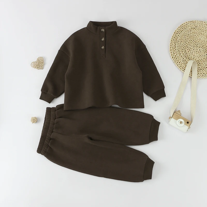 Custom Baby Boy Boutique Two Piece Plain Kids Hoodie and Pants Sweatsuits Sets