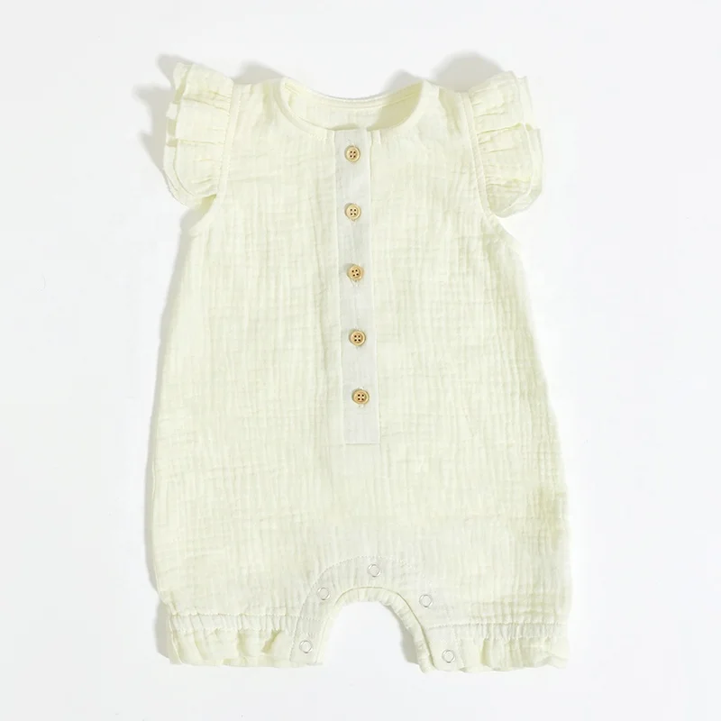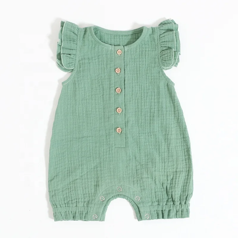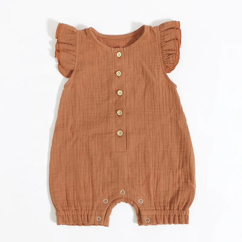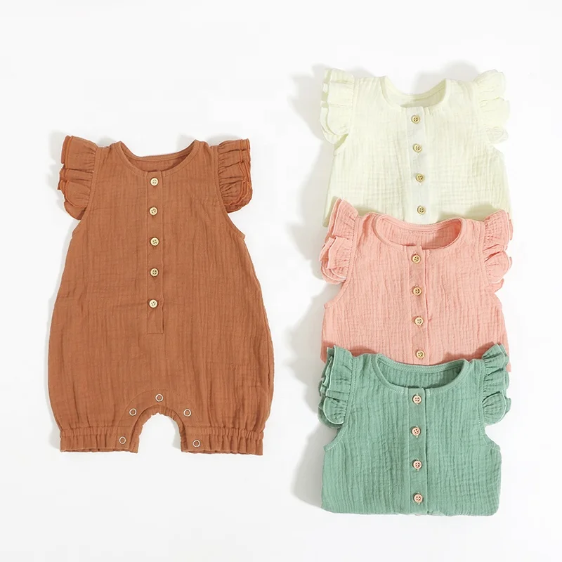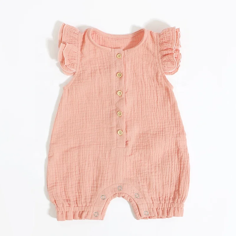 100% Cotton Newborn Baby Girl Romper Frill Muslin Playsuit Baby Sleeveless Jumpsuit Baby Clothing