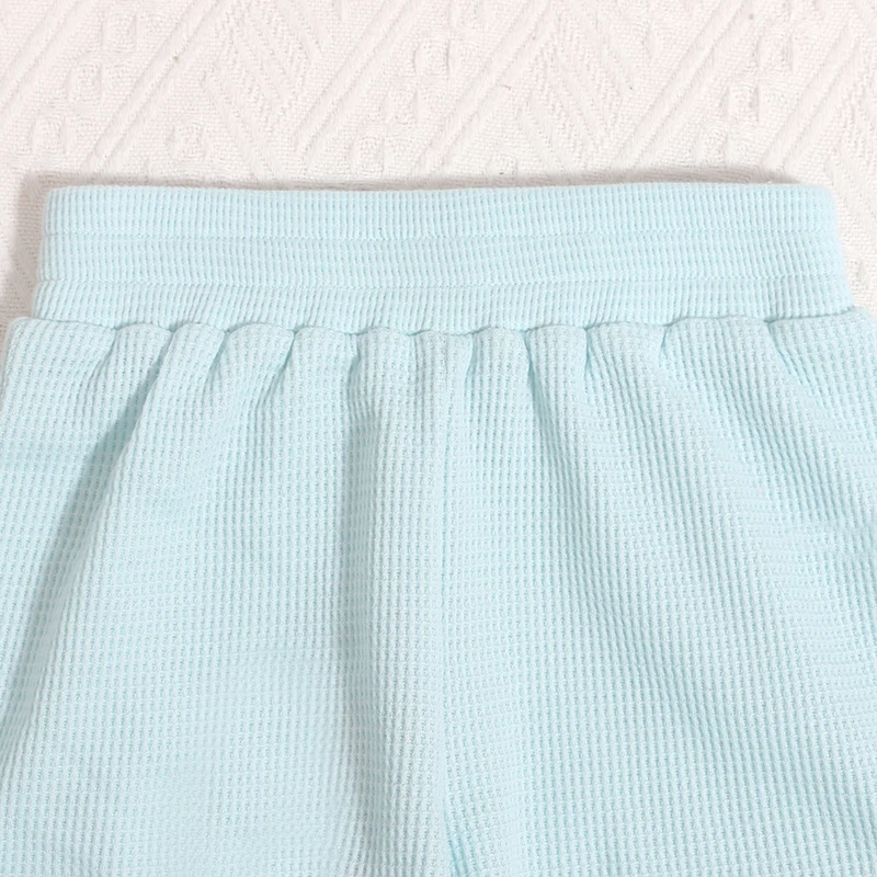 2026 Private Logo Kids Cloth Spring Organic Waffle Ribbed Cuff Cool Newborn Baby Short Pants Set